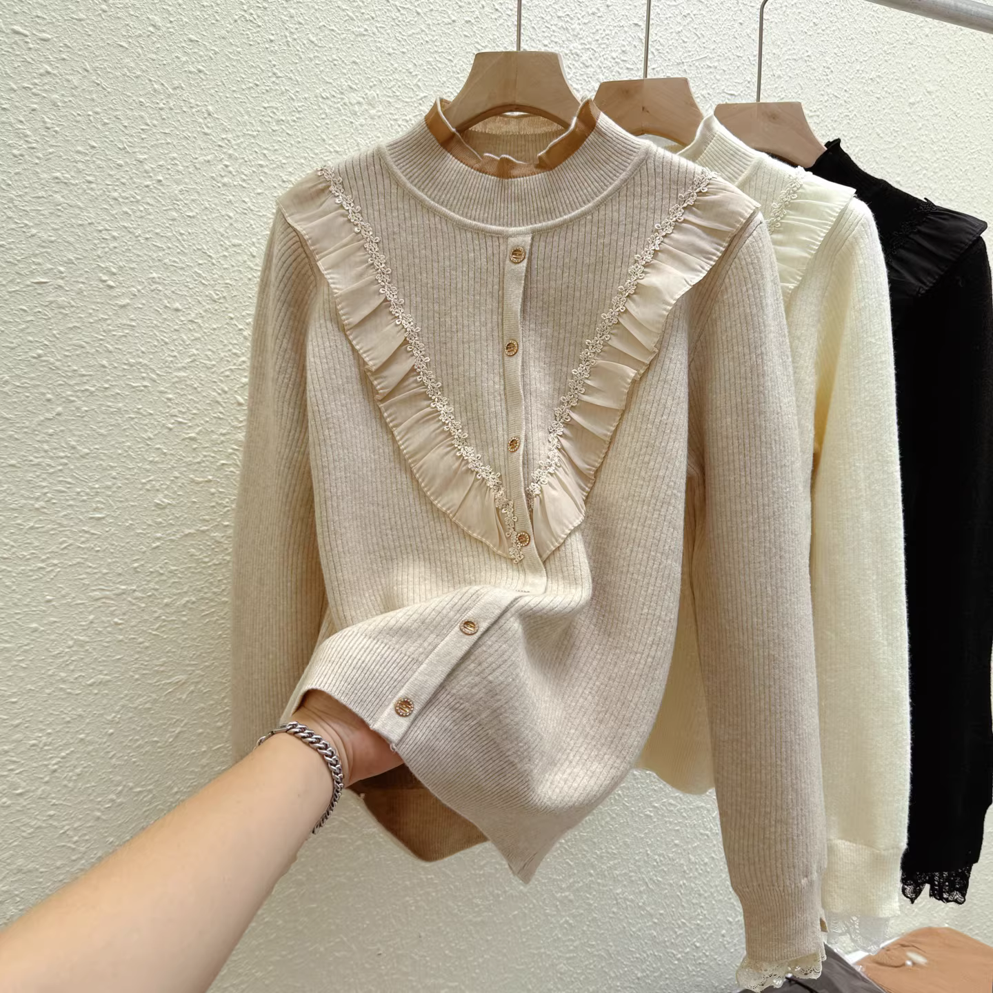 - Áo len nữ giảm giá có nhãn cắt, cổ bèo, lót lông cừu, chất liệu dệt kim dày, thích hợp cho mùa thu đông, kiểu dáng ôm dáng.