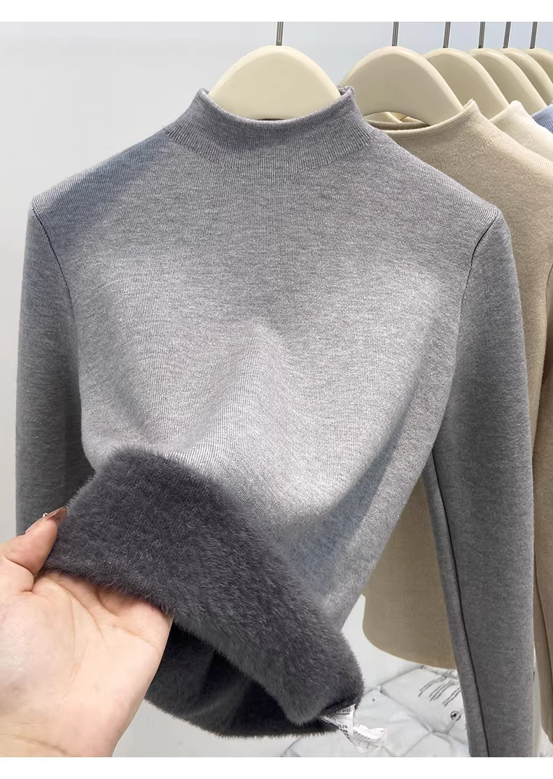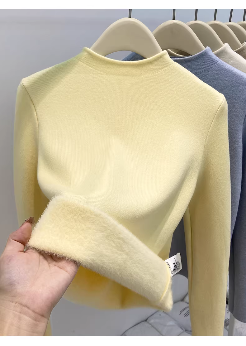 Áo len nữ La Chapelle cổ nửa cao màu đen, lớp trong, kiểu dáng nhỏ nhắn, thu đông 2025