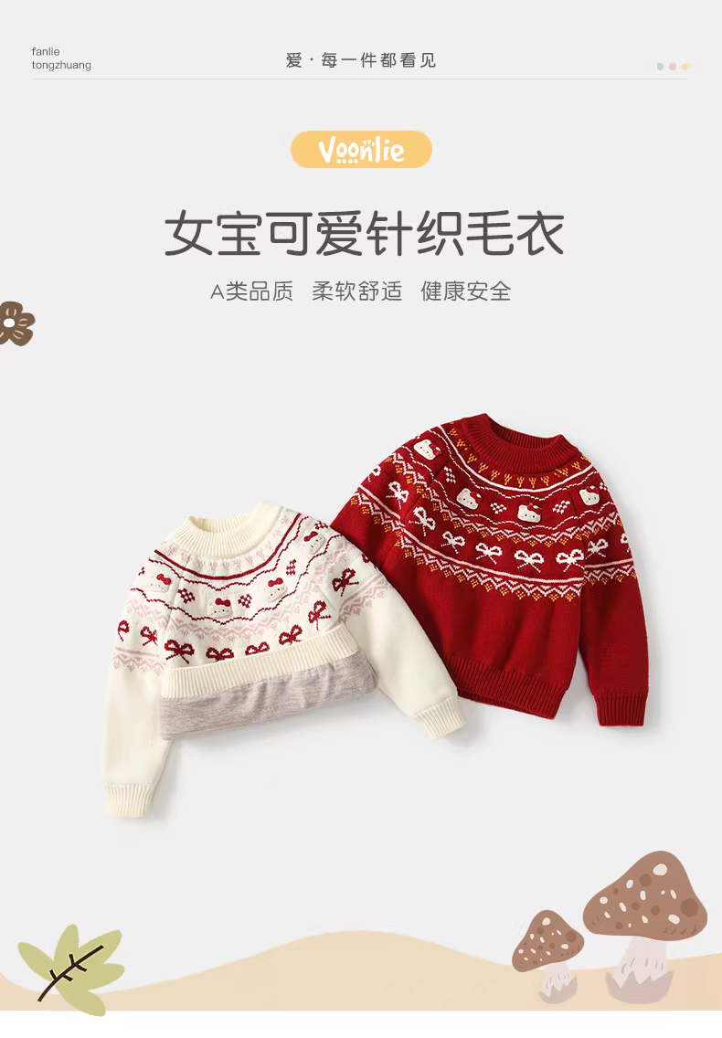 - Áo len nữ mùa đông quần áo thời trang trẻ em quần áo trẻ em màu đỏ Fair Isle năm mới áo sơ mi dệt kim mùa đông