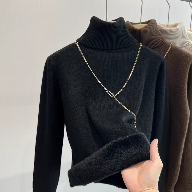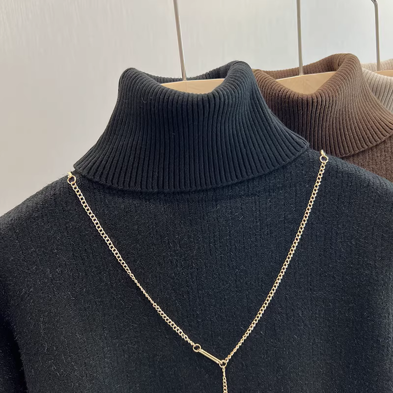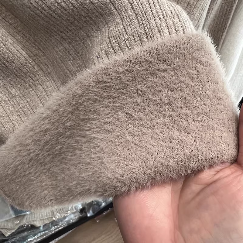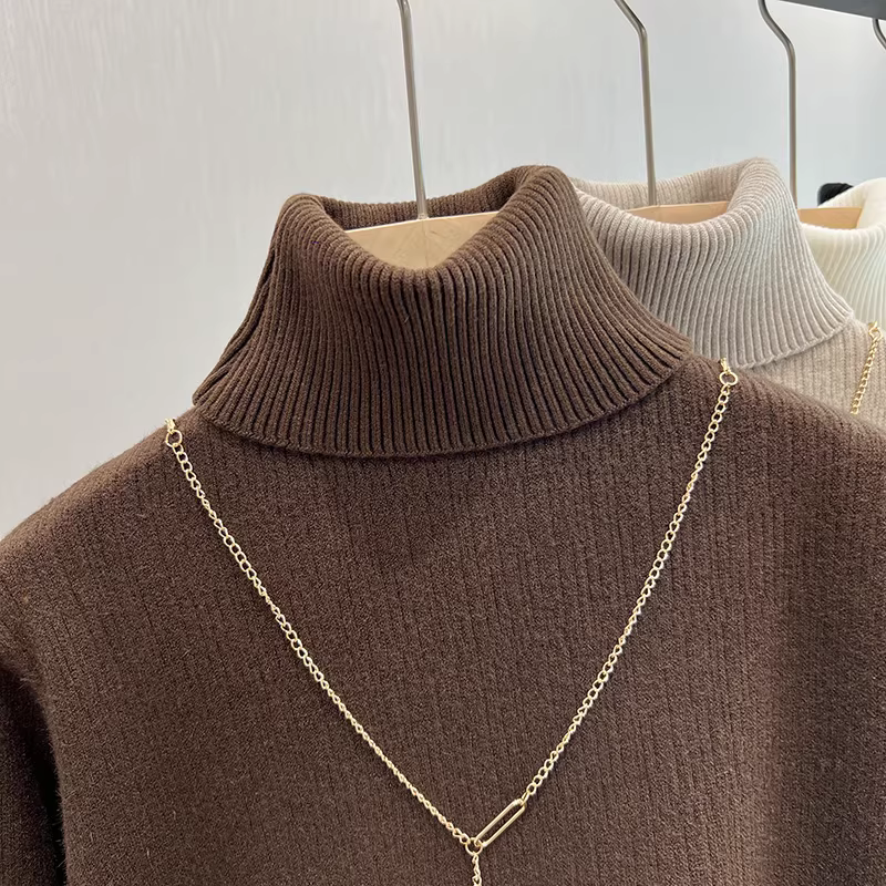 - Áo len nữ xuất khẩu Thâm Quyến, chất liệu lông cừu dày dặn, cổ cao, lớp lót bên trong dày dặn, kiểu dáng liền thân, thích hợp cho mùa thu đông.