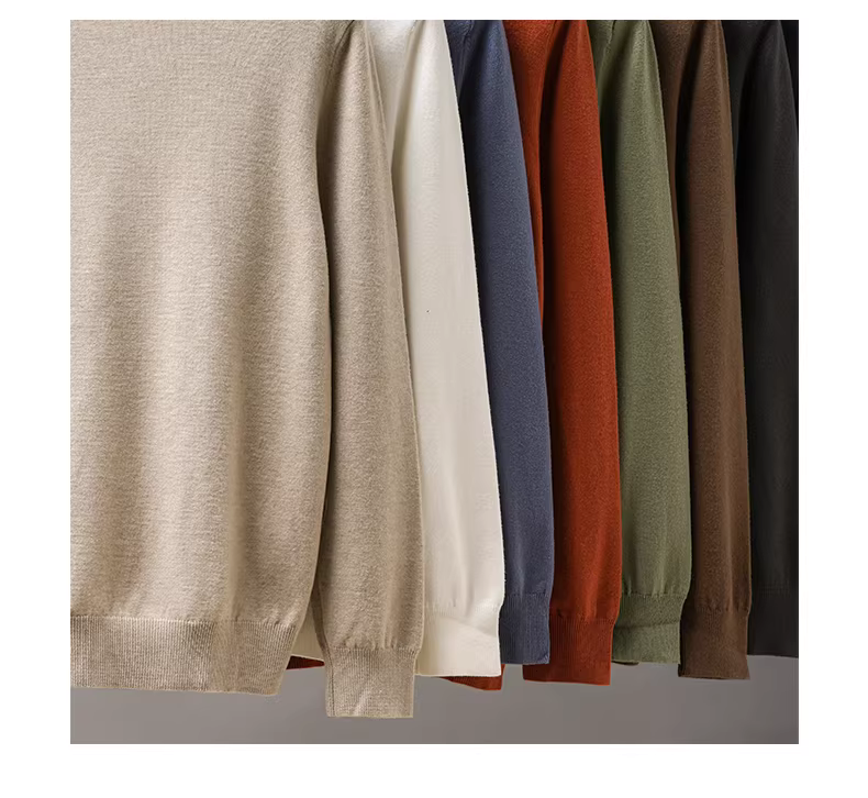 Áo len nửa cổ cao De Rong dành cho nam, mùa thu đông, giặt máy được, dày dặn giữ ấm, lớp lót màu trơn, chất liệu dệt kim cổ trung.