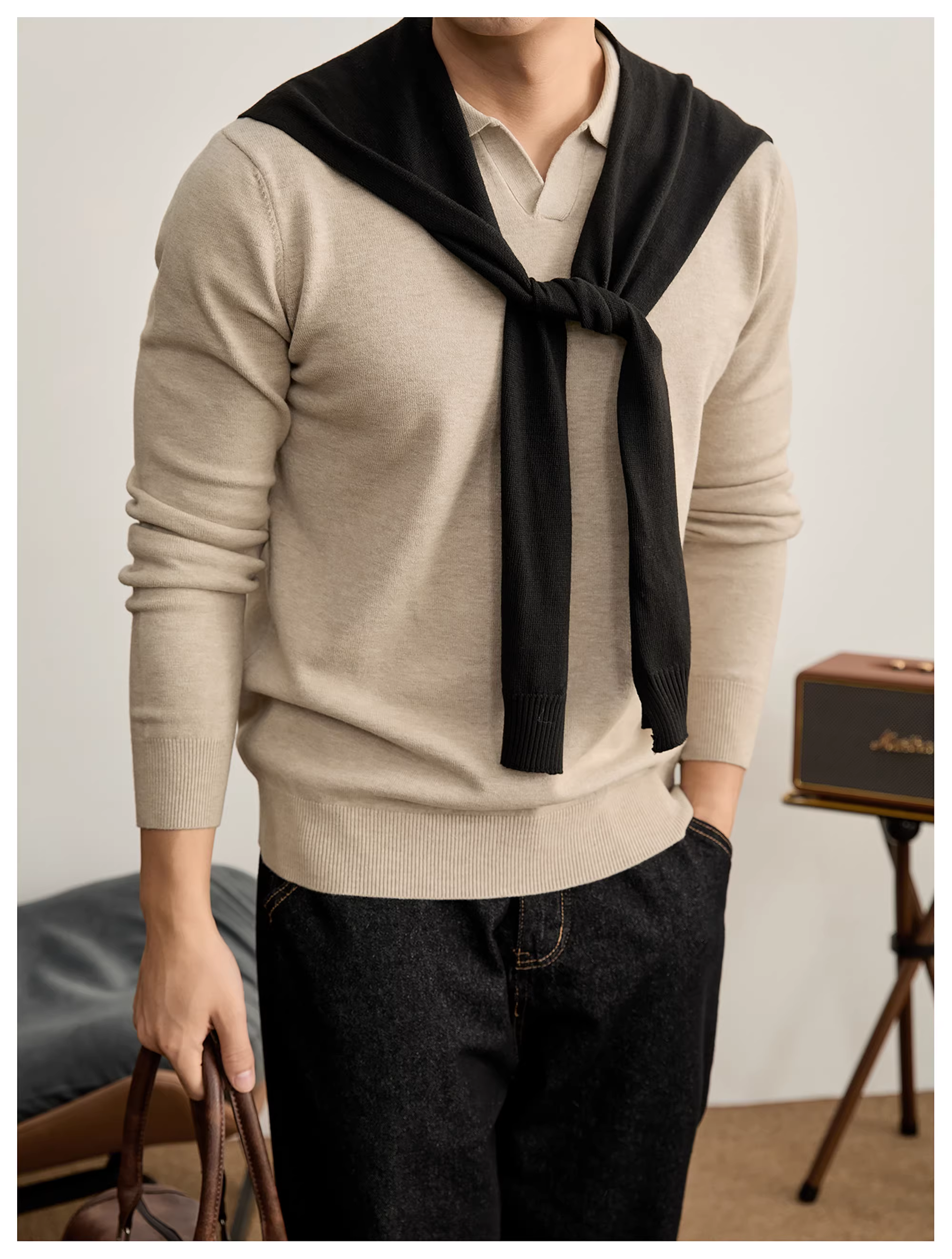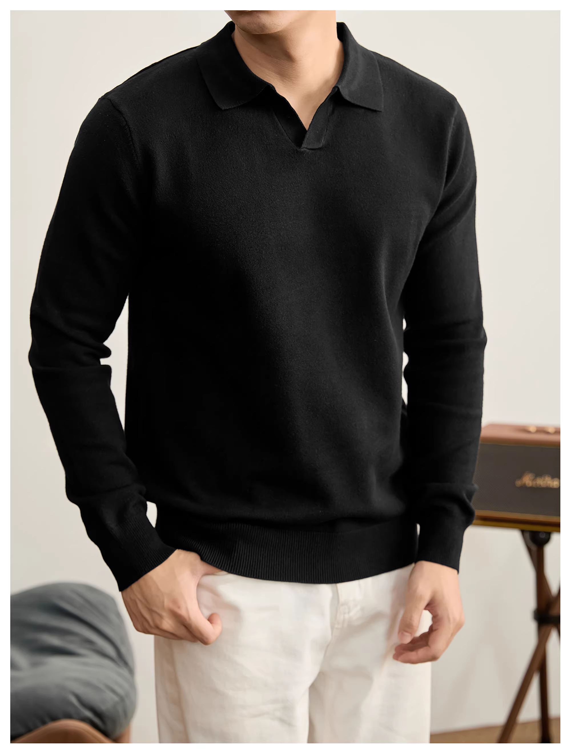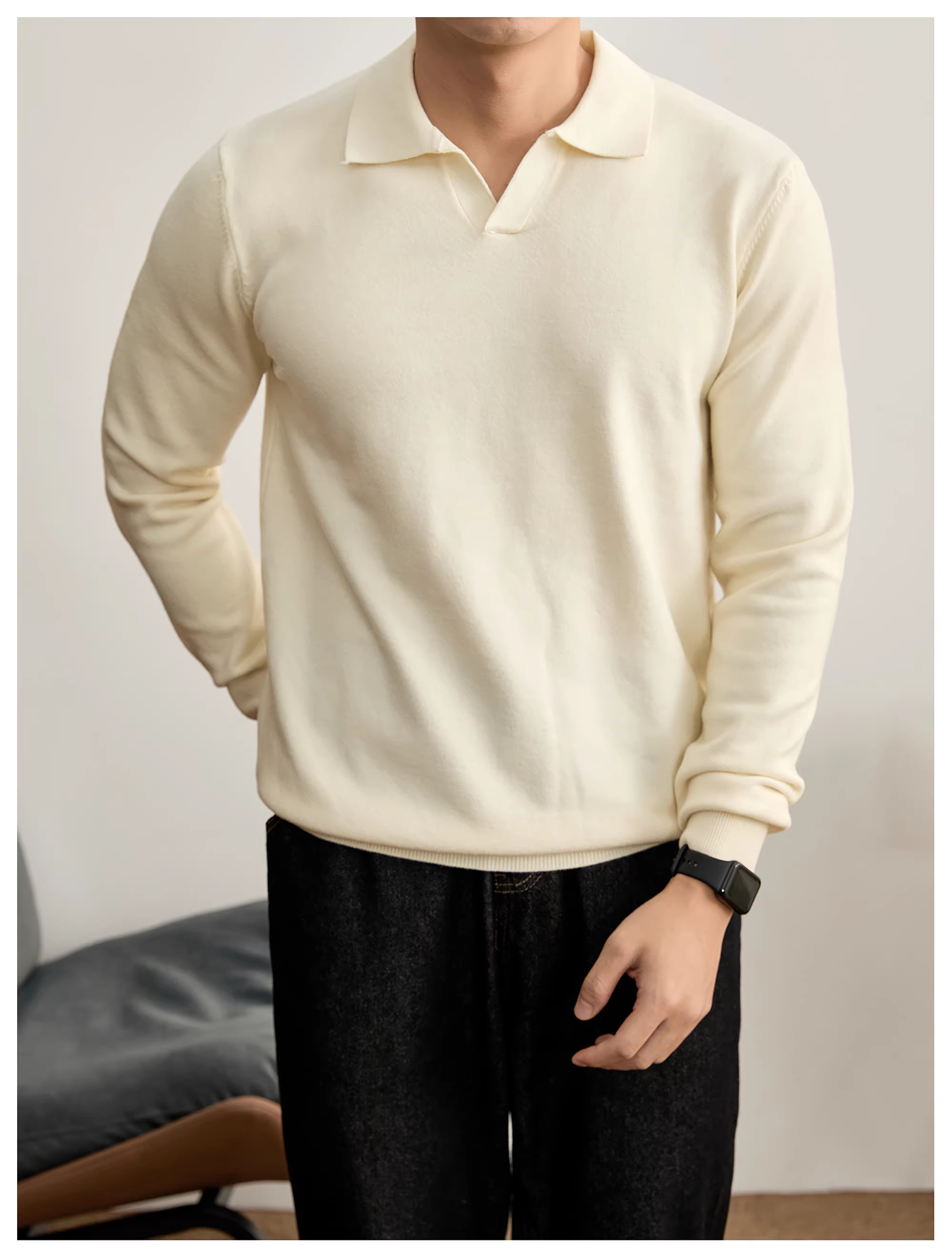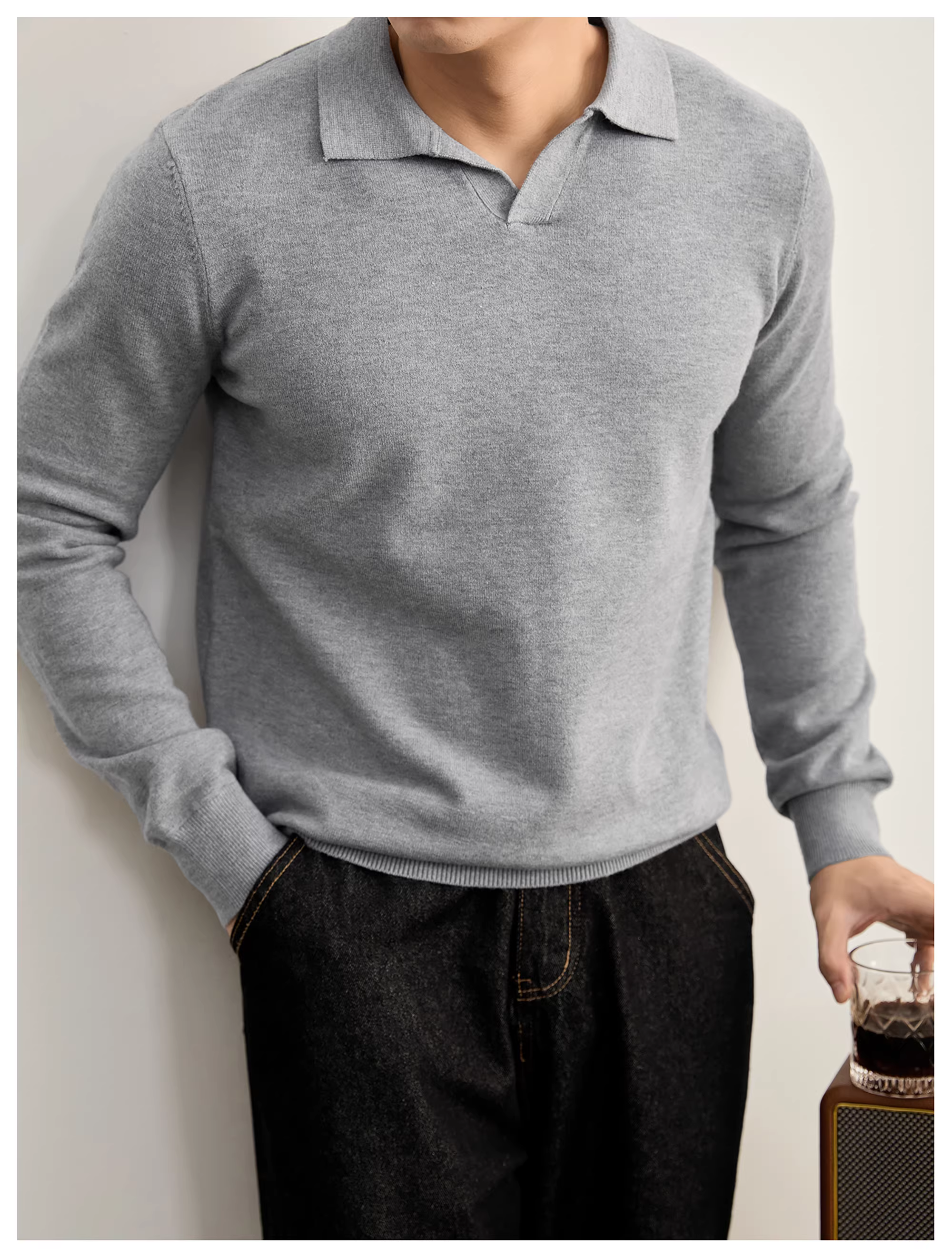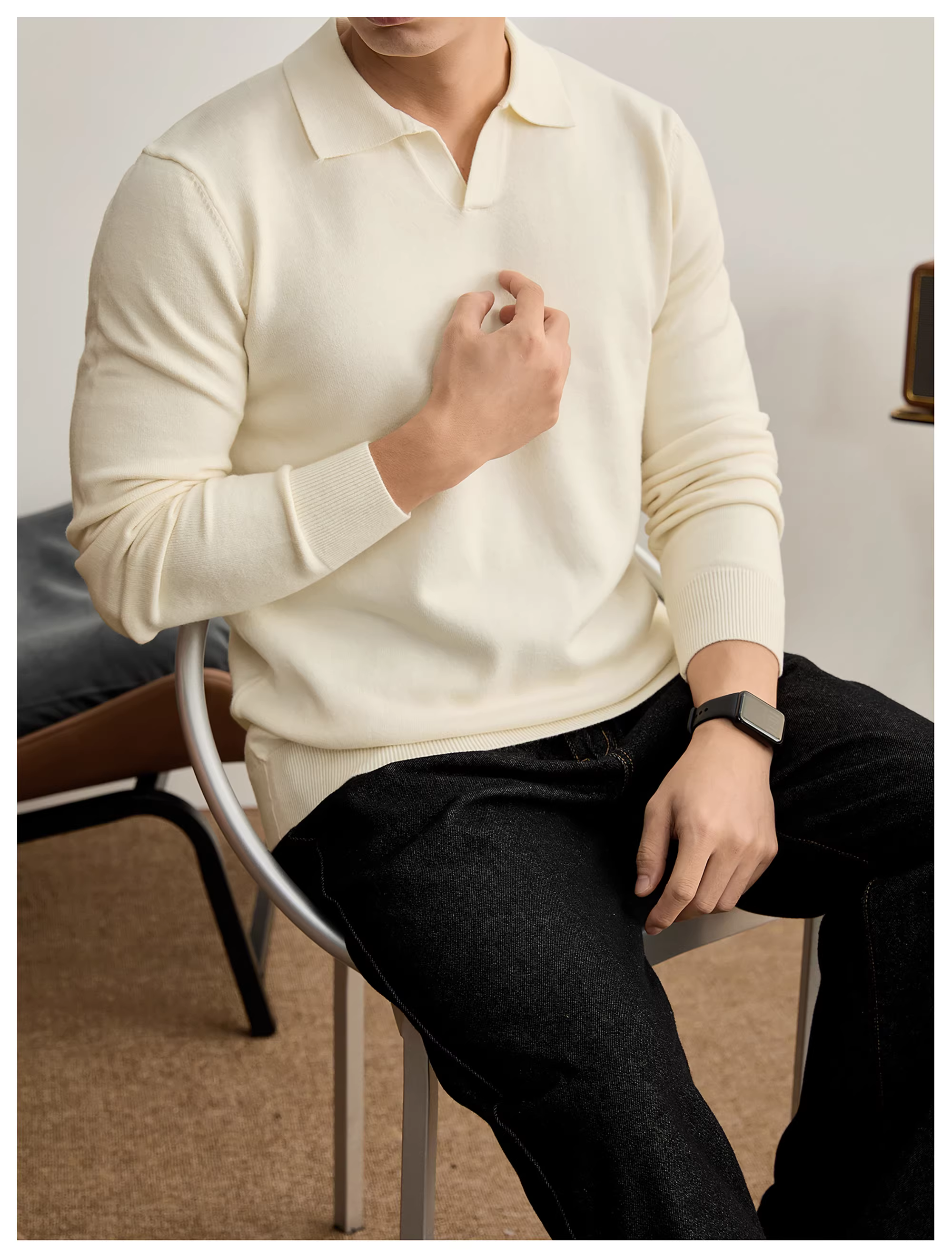 Áo len POLO cổ hải âu pha len cừu kiểu Mỹ LUUD dành cho nam, áo len dệt kim phong cách tối giản mùa thu đông