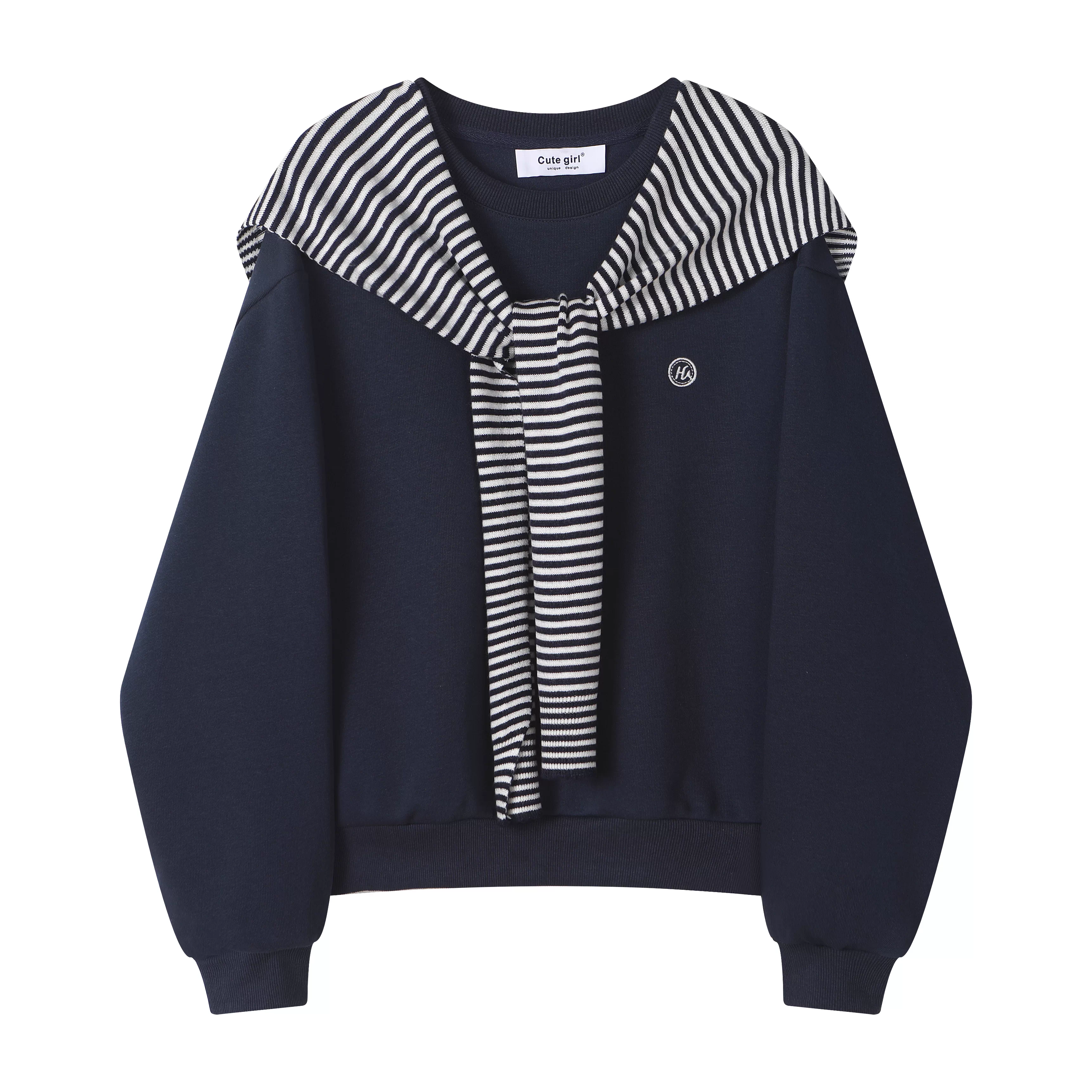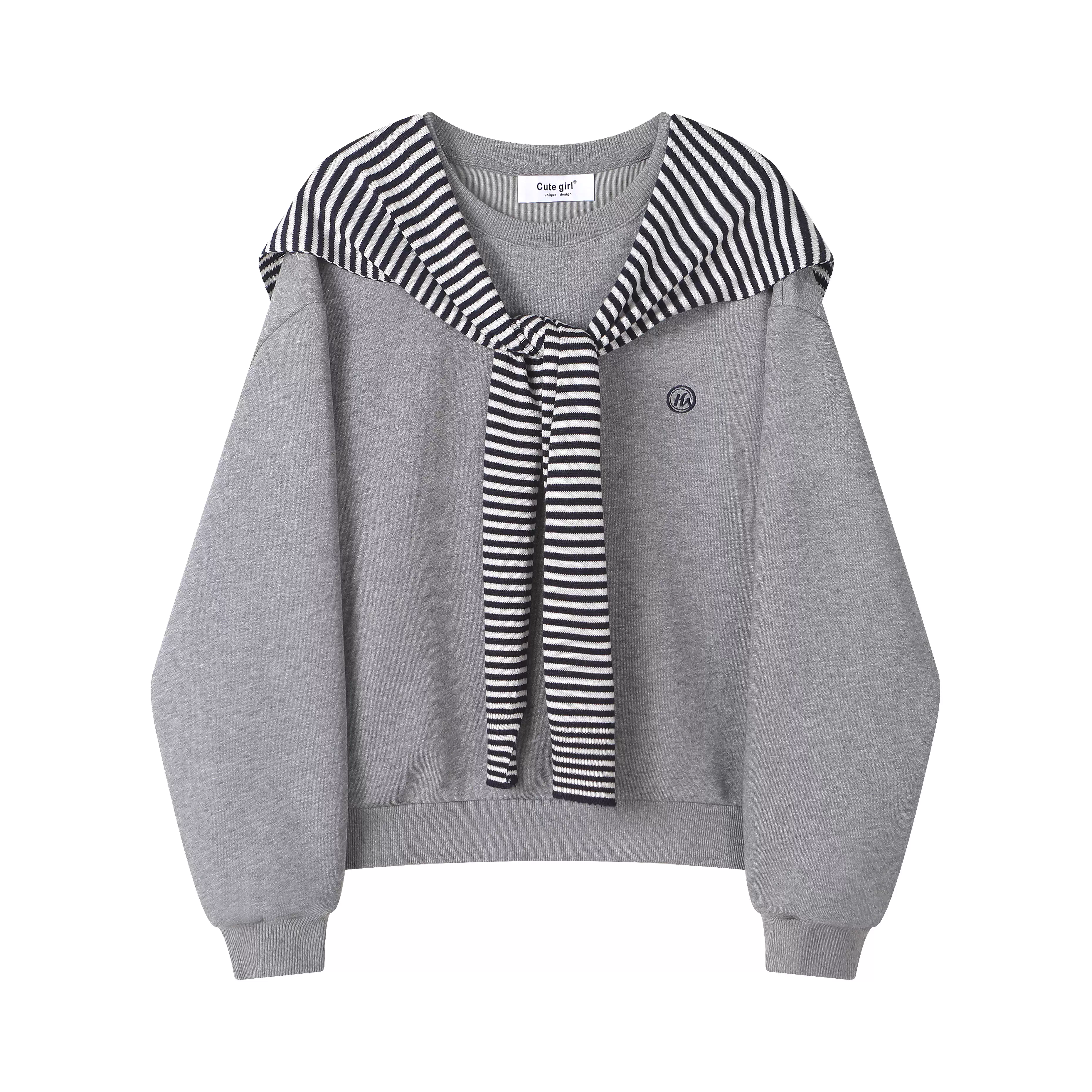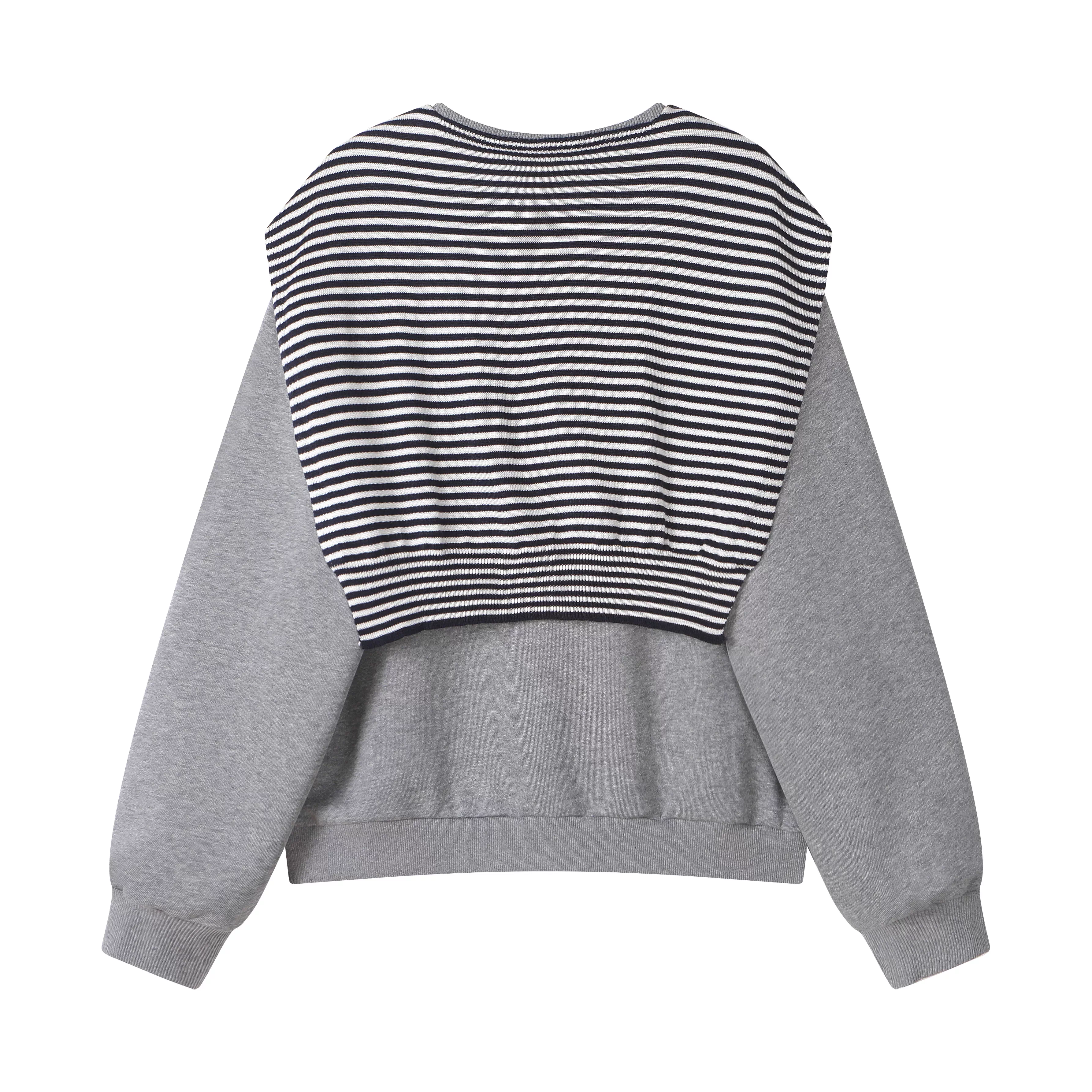 - Áo len sọc xám phong cách lười biếng CuteGirl dành cho nữ, bộ hai mảnh cổ tròn cổ điển mùa thu