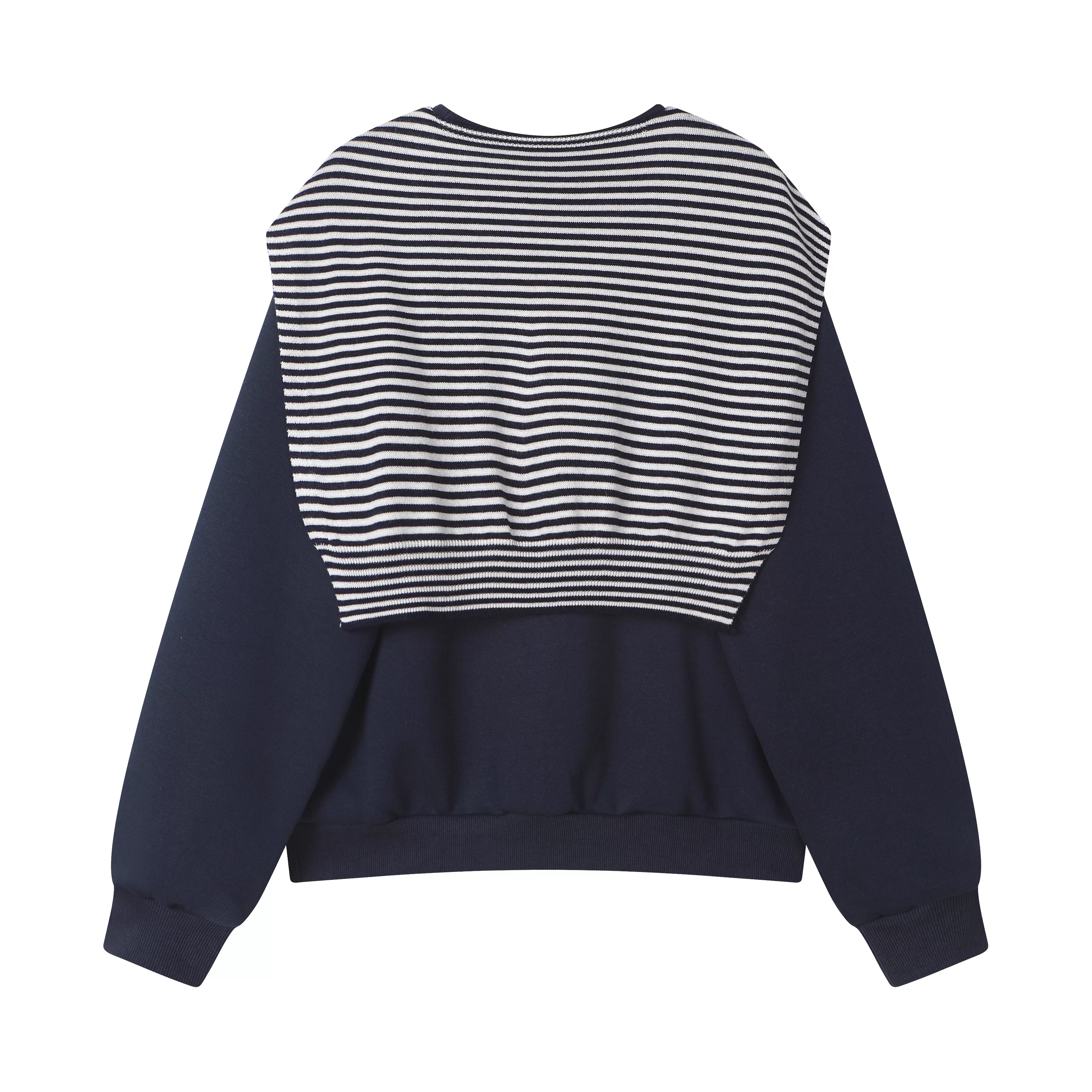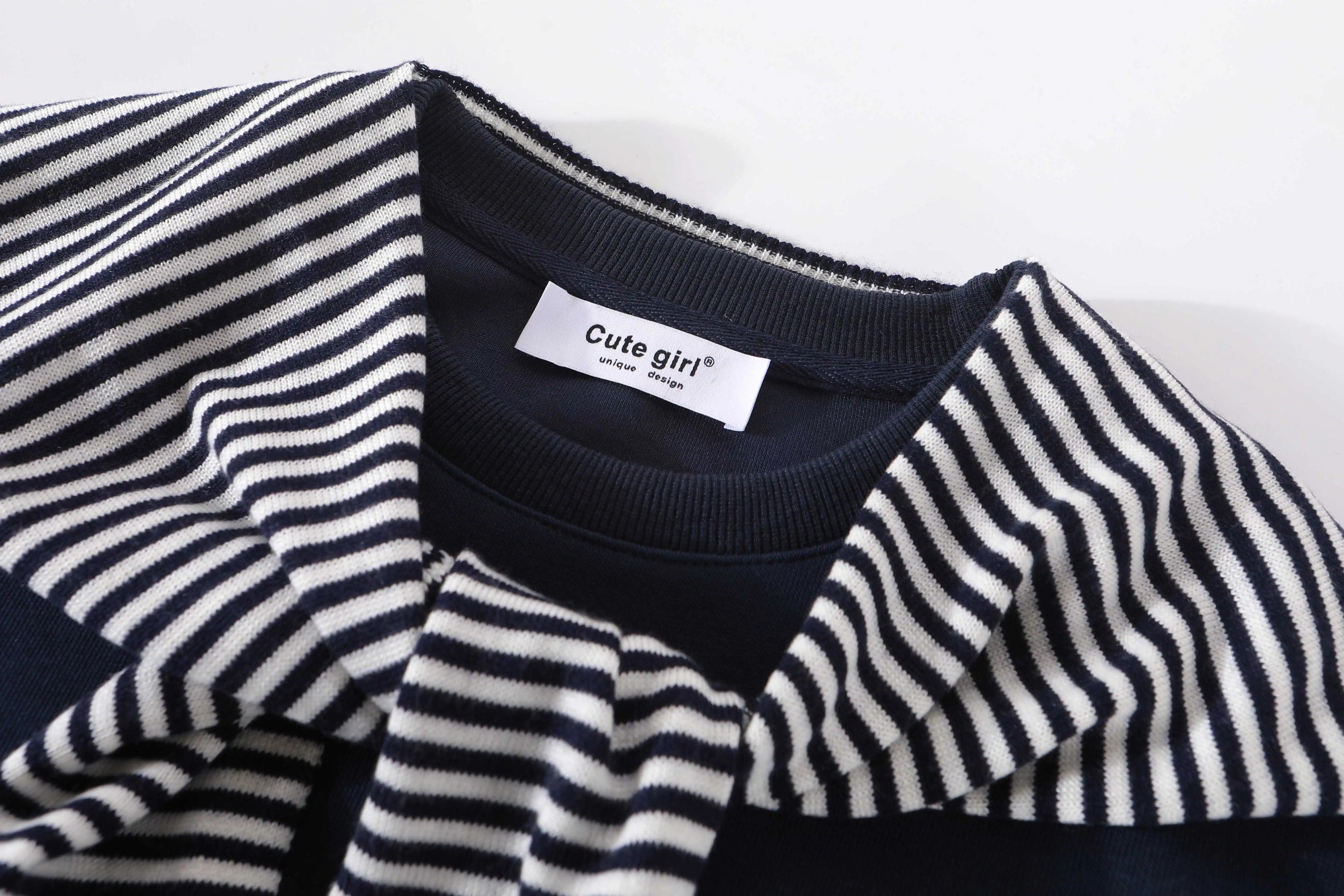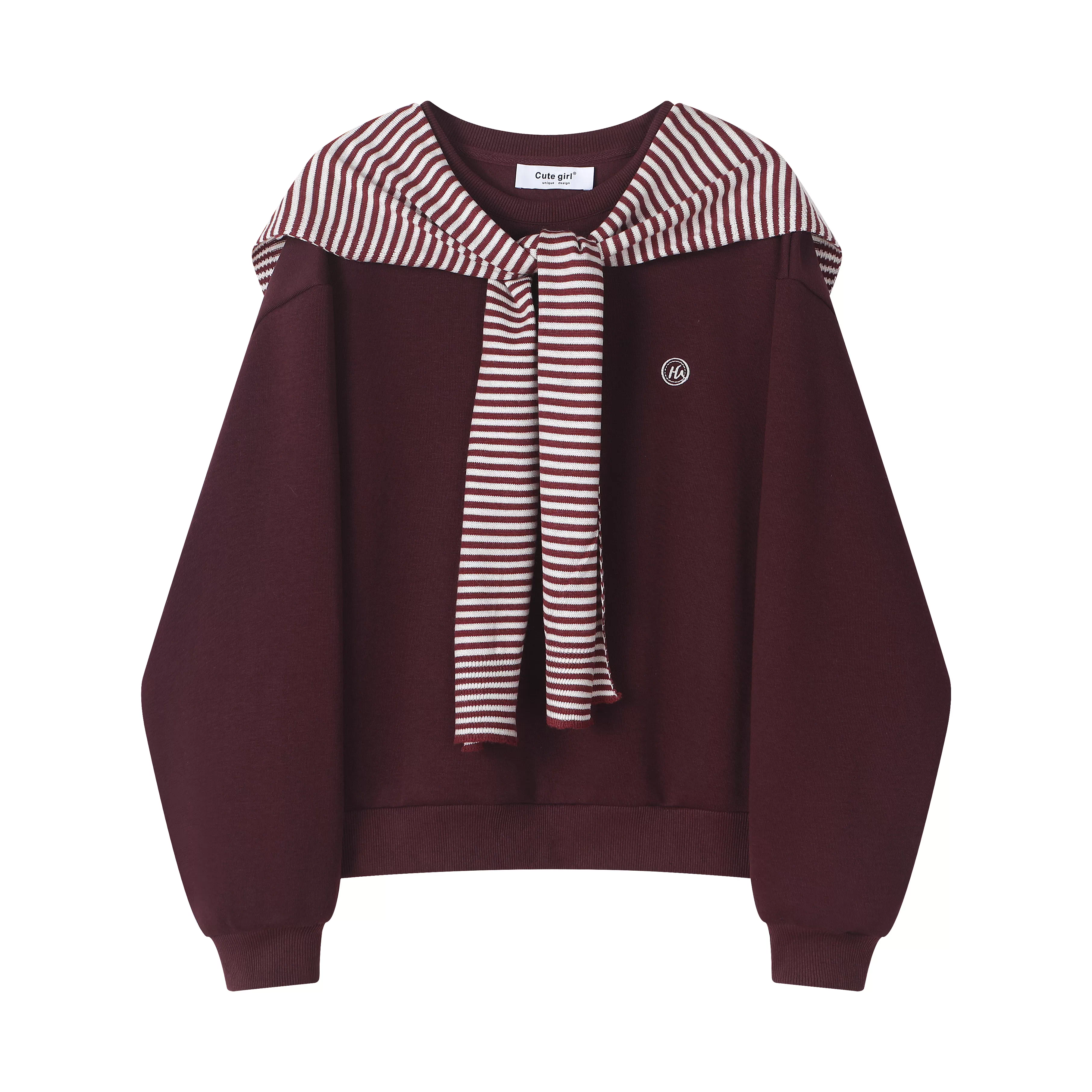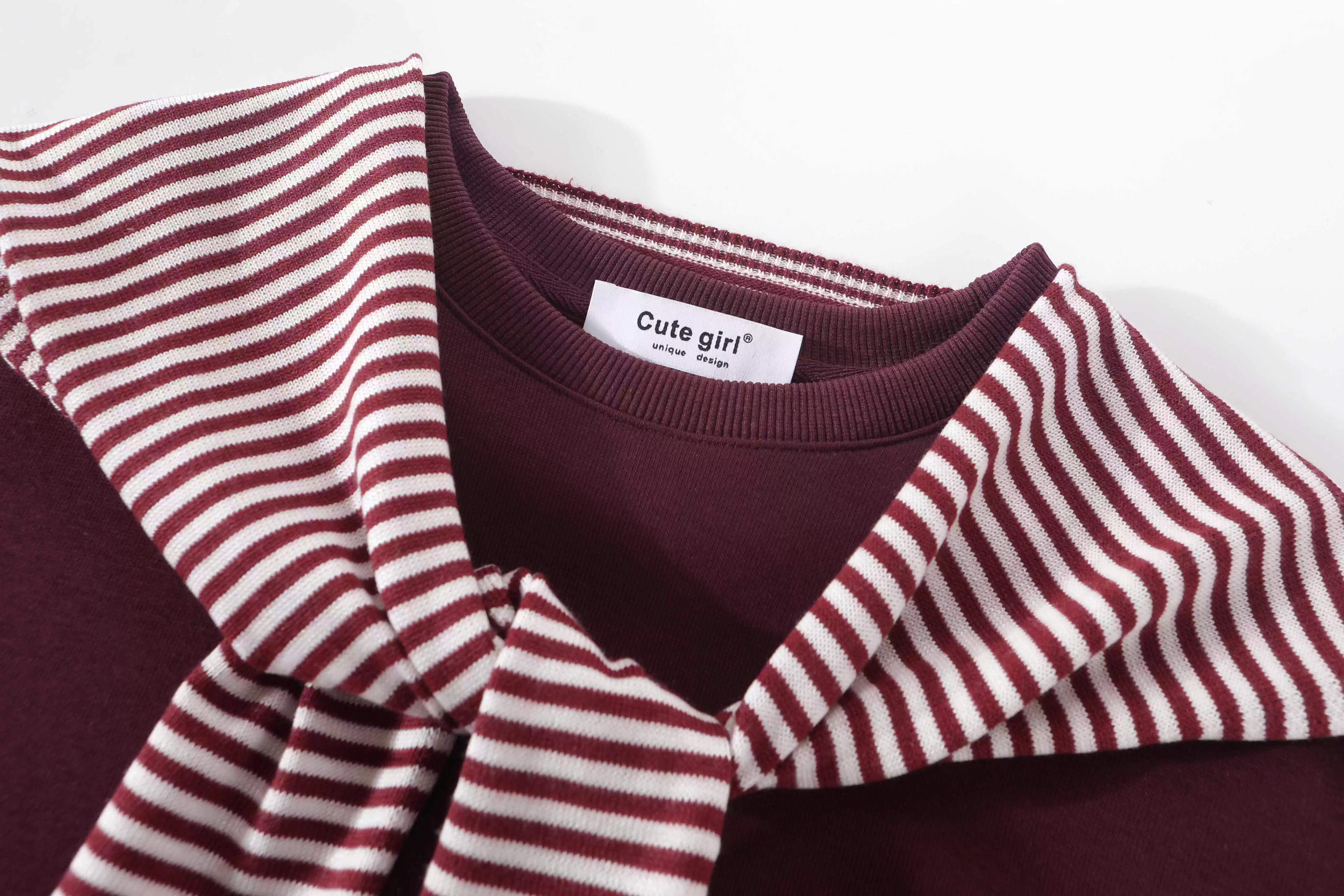 - Áo len sọc xám phong cách lười biếng CuteGirl dành cho nữ, bộ hai mảnh cổ tròn cổ điển mùa thu