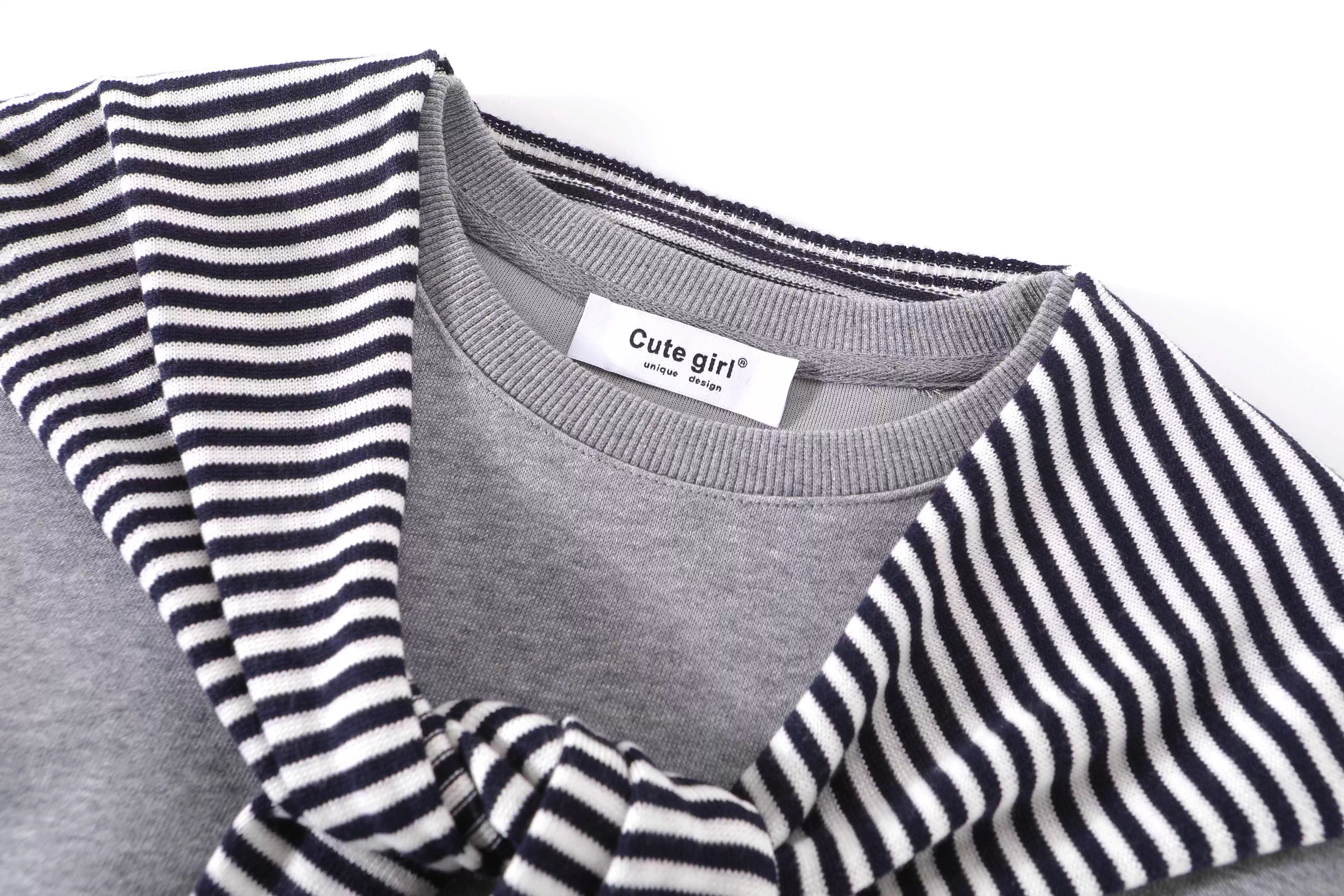 Áo len sọc xám phong cách lười biếng CuteGirl dành cho nữ, bộ hai mảnh cổ tròn cổ điển mùa thu