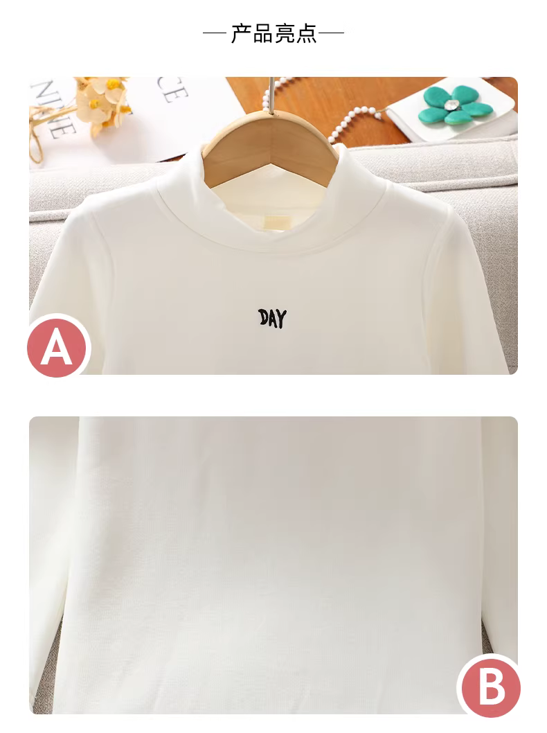 - Áo lót giữ nhiệt mùa đông cho bé gái, áo thun cổ lọ nửa cao tích hợp lớp lông cừu cho trẻ em, quần áo thu đông dày dặn mới năm 2025 dành cho bé gái.