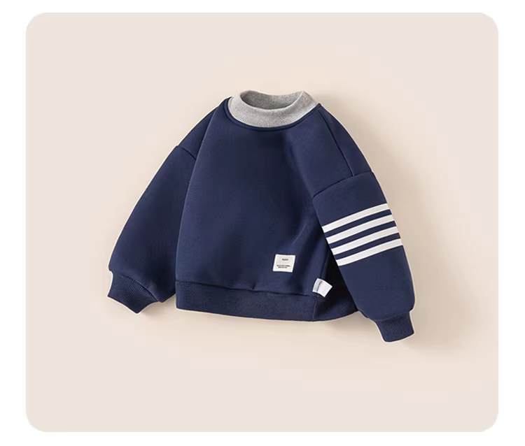 Áo nỉ bé trai INSbobo thu đông 2025 kiểu mới, lót lông cừu, áo bé trai thời trang sọc ấm áp