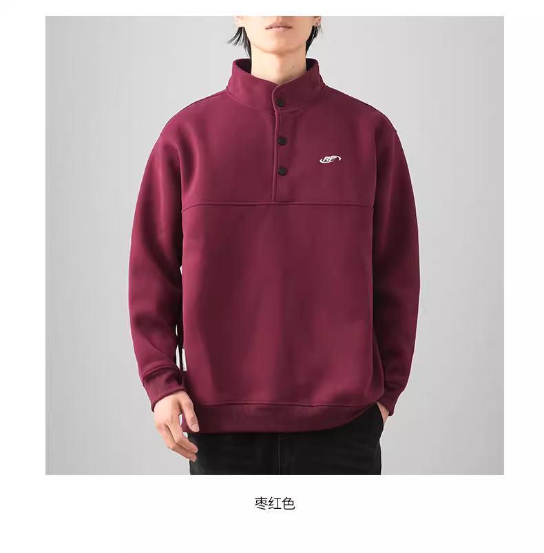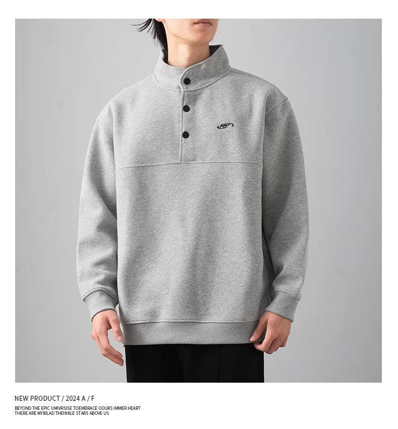 - Áo nỉ cổ đứng hạng nặng 420G dành cho nam, kiểu mới xuân thu 2024, áo khoác dáng rộng không mũ kiểu Mỹ thời thượng, thêu họa tiết.