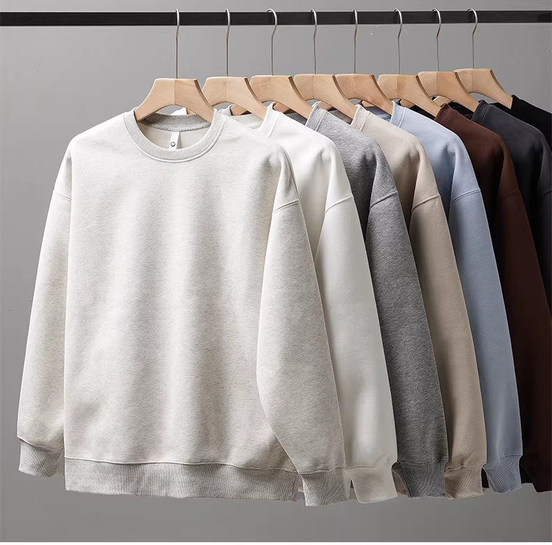 Áo nỉ cổ tròn hạng nặng 460G dành cho nam, lót lông cừu mùa thu đông, phong cách Mỹ, dáng rộng, dày, áo sơ mi màu trơn, áo khoác dài tay nam