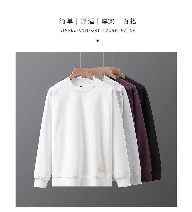 - Áo nỉ cổ tròn hạng nặng Pure Group 360G dành cho nam, áo sơ mi dáng rộng phối màu phong cách Mỹ mùa thu, áo khoác dài tay không mũ.