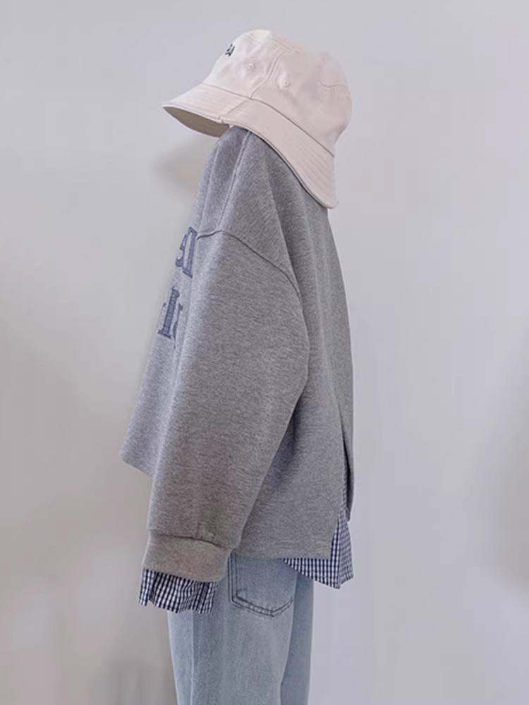 - Áo nỉ giả hai mảnh phối họa tiết ca rô dành cho bé gái, kiểu Hàn Quốc, phong cách thường ngày, in hình trái tim và chữ, mùa xuân 2025, dành cho trẻ lớn hơn