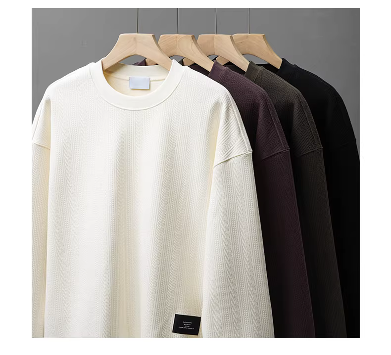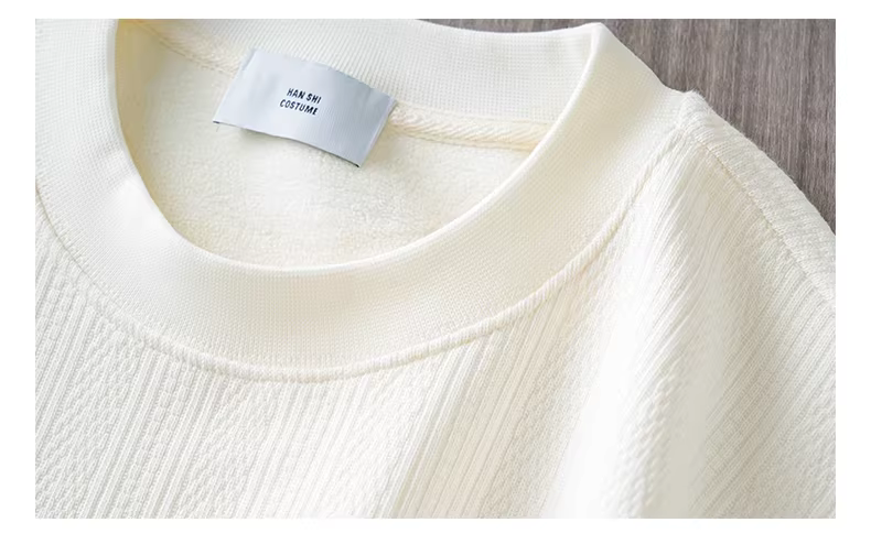 Áo nỉ lông cừu hạng nặng 460G dành cho nam, phong cách thu đông, cảm giác cao cấp, lớp áo lót dày và ấm áp, cổ tròn, áo khoác không mũ.