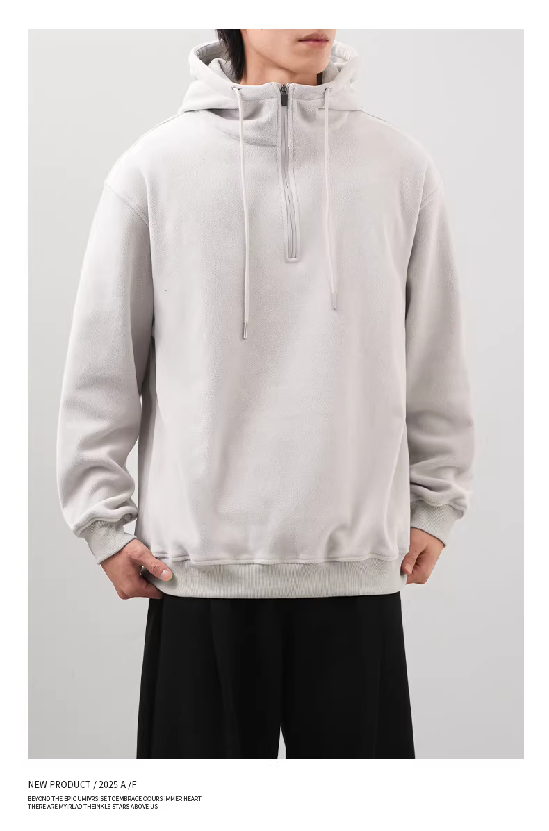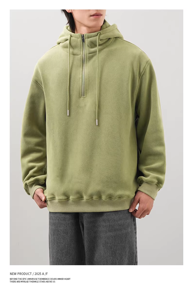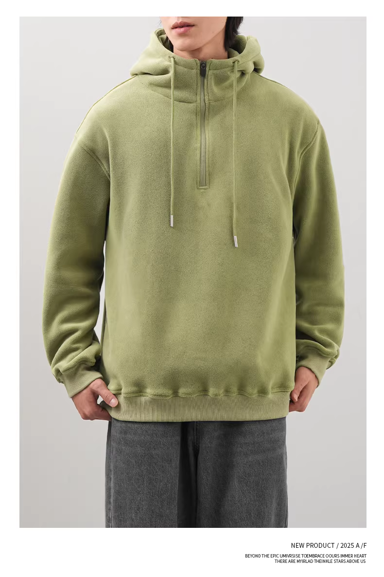 Áo nỉ lông cừu hạng nặng Pure Group 490G dành cho nam, nửa khóa kéo, lót lông cừu mùa đông, dày dặn, áo khoác có mũ trùm đầu bằng lông cừu ấm áp.