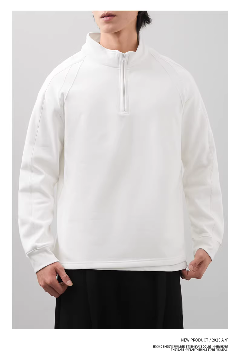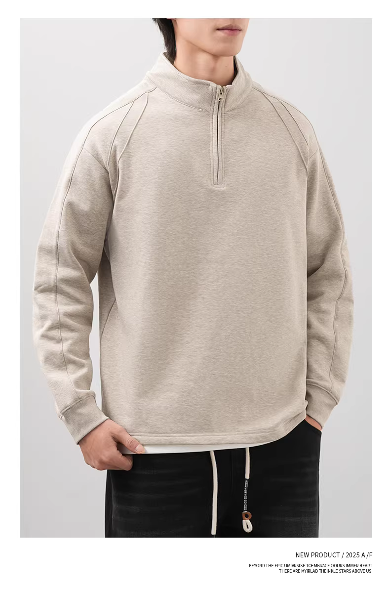 Áo nỉ nam cổ đứng nửa khóa kéo cho mùa thu đông, áo nỉ kiểu Mỹ, kiểu dáng phá cách, dày dặn và ấm áp, kiểu áo khoác thường ngày.