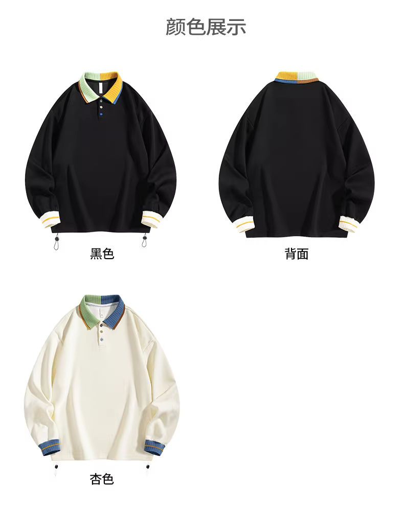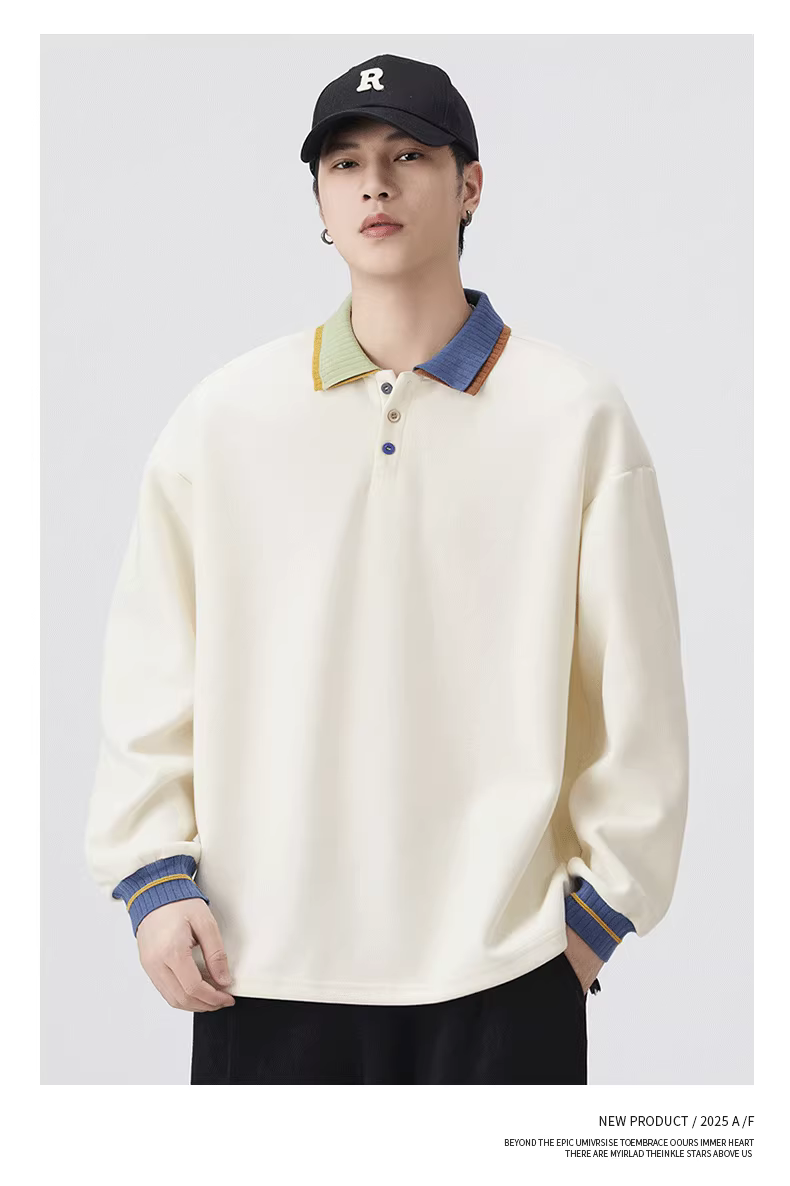 - Áo nỉ nam phối màu đơn sắc, kiểu dáng mới xuân thu 2025, áo khoác kiểu polo dáng rộng phong cách đại học Mỹ