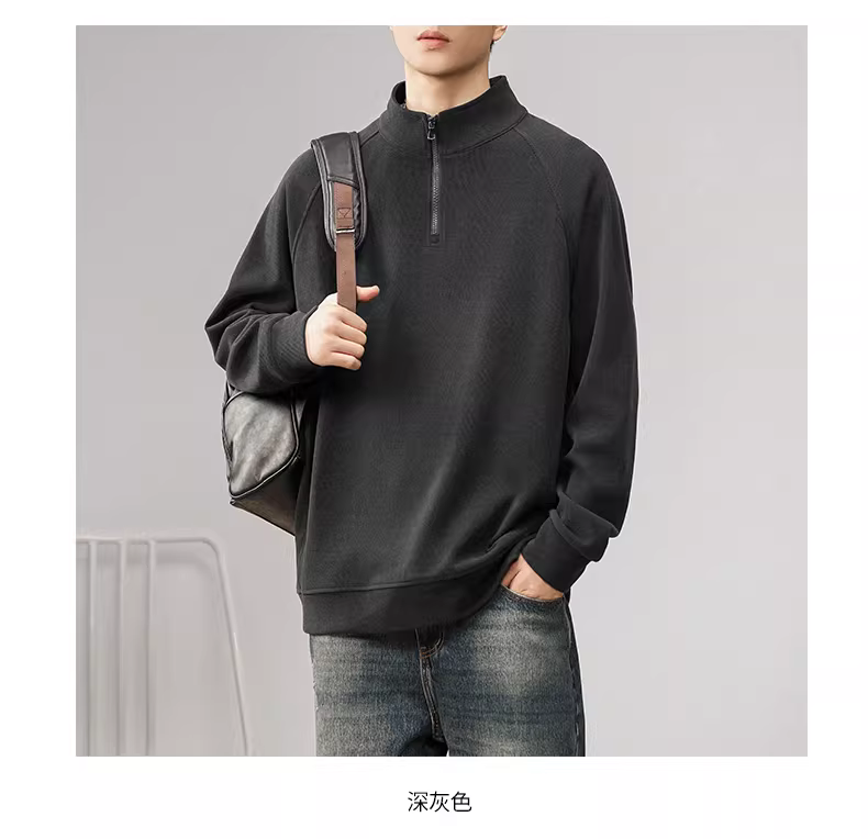 - Áo nỉ nửa khóa kéo hạng nặng Pure Group 410G dành cho nam, áo khoác cổ đứng dáng rộng cao cấp mùa thu, áo khoác kiểu dáng thời thượng