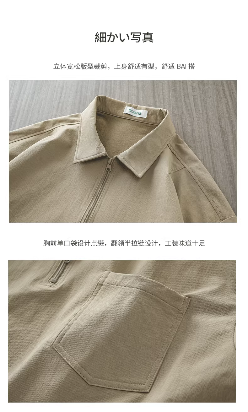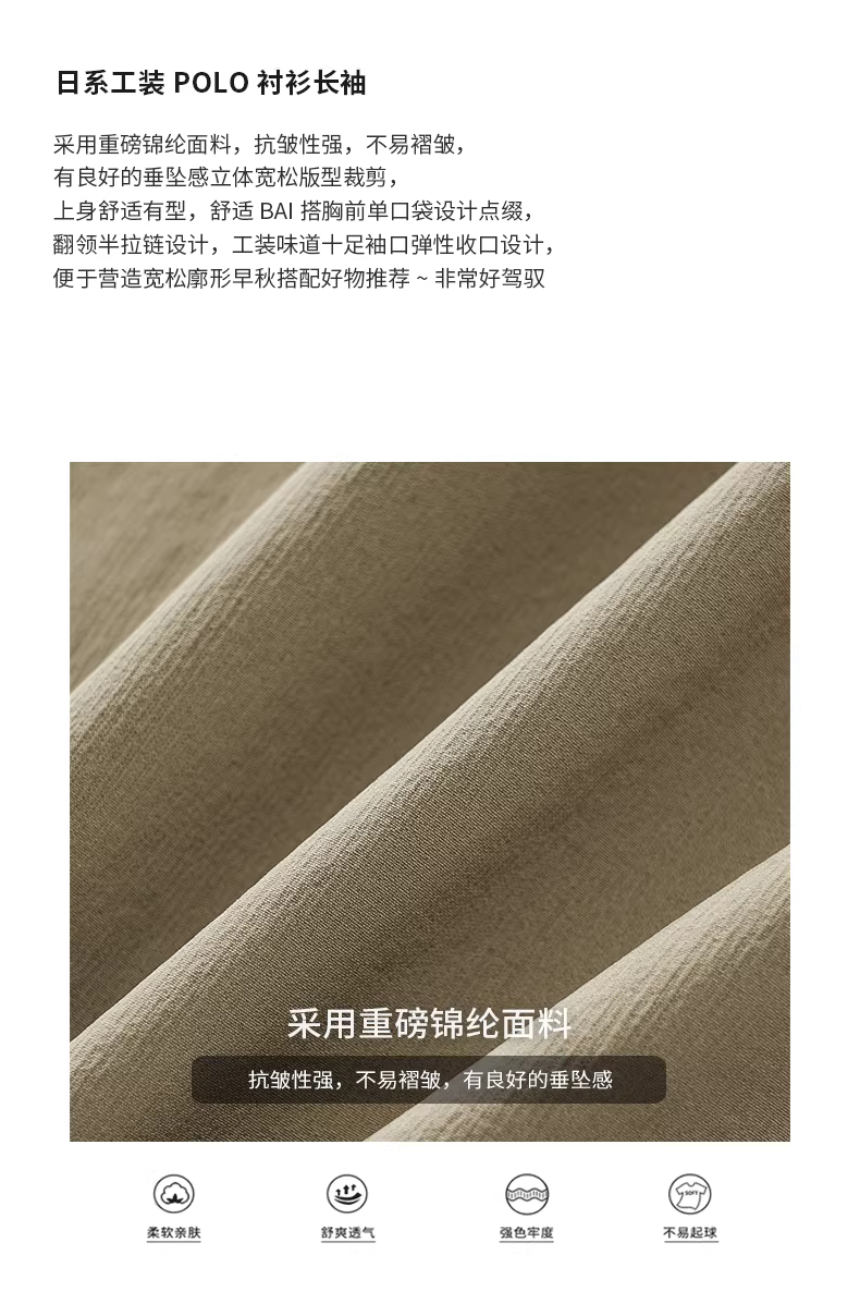 - Áo polo công sở phong cách núi non tinh khiết, tay dài, nam, mùa thu, phong cách Harajuku, dáng rộng, cổ trụ, áo khoác nửa khóa kéo