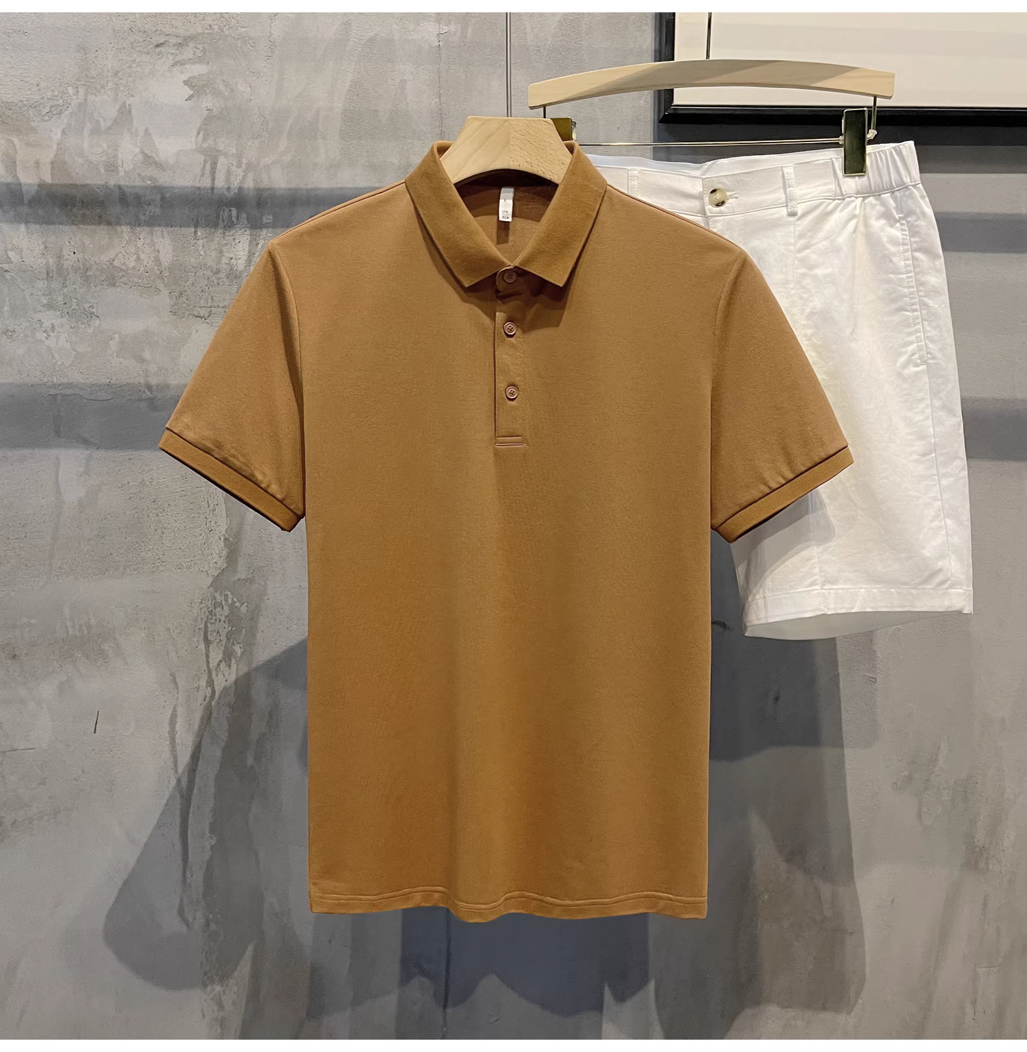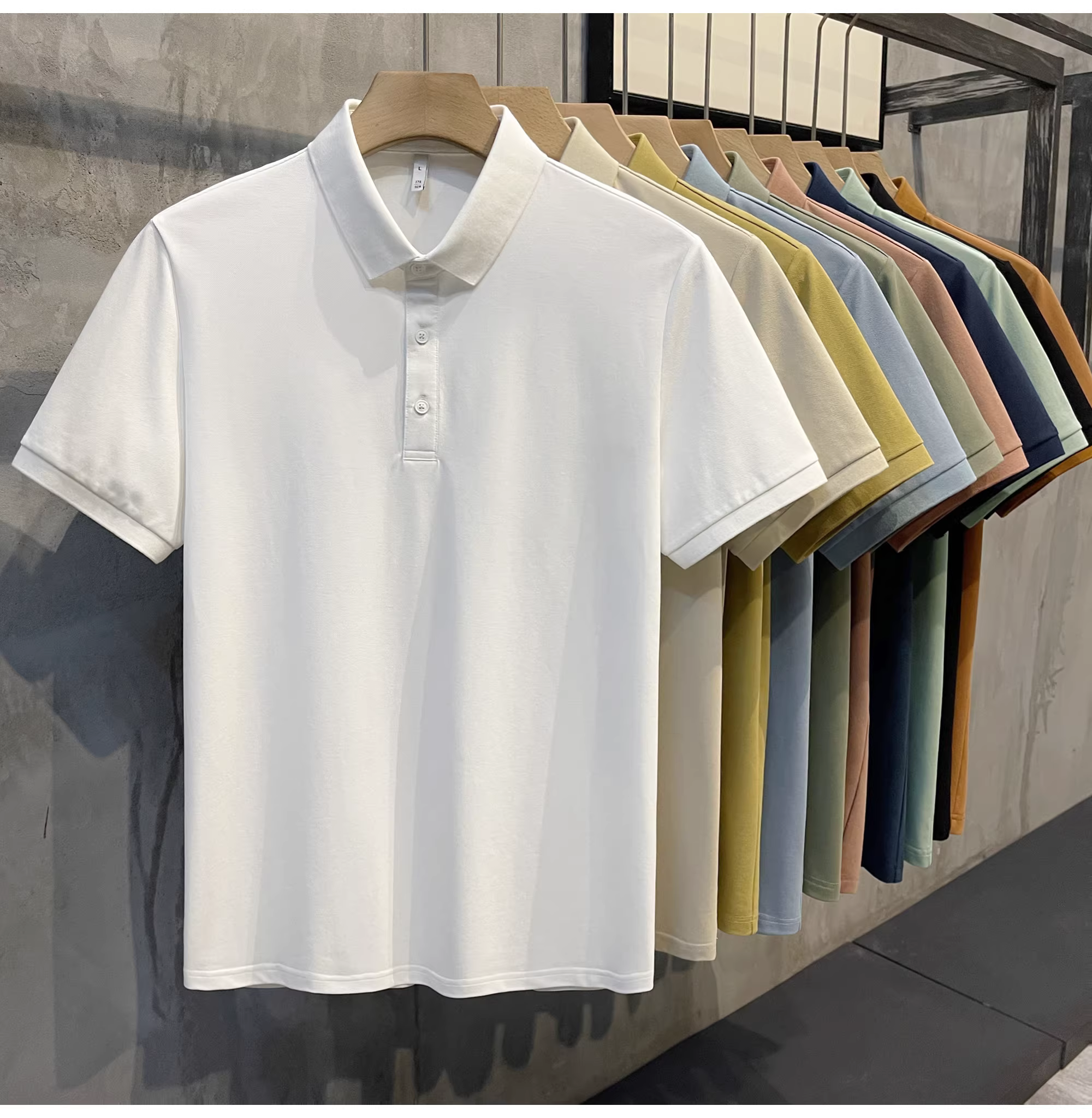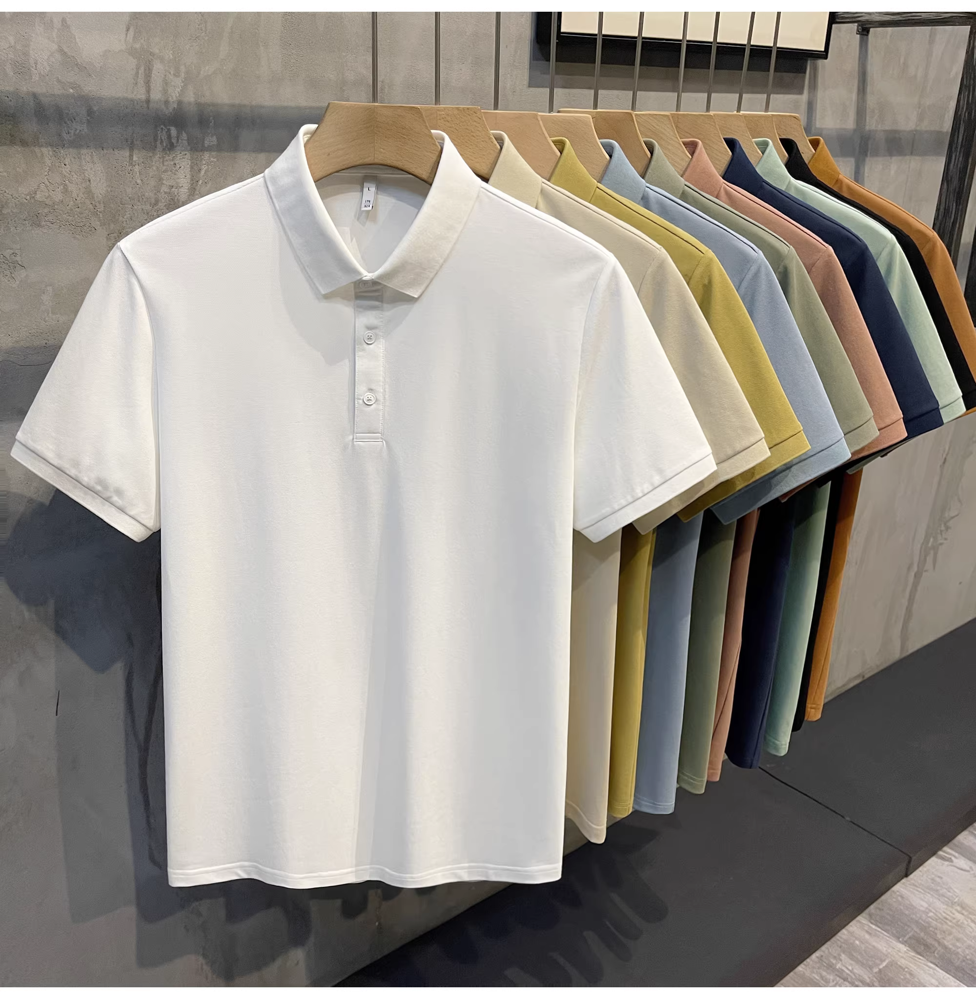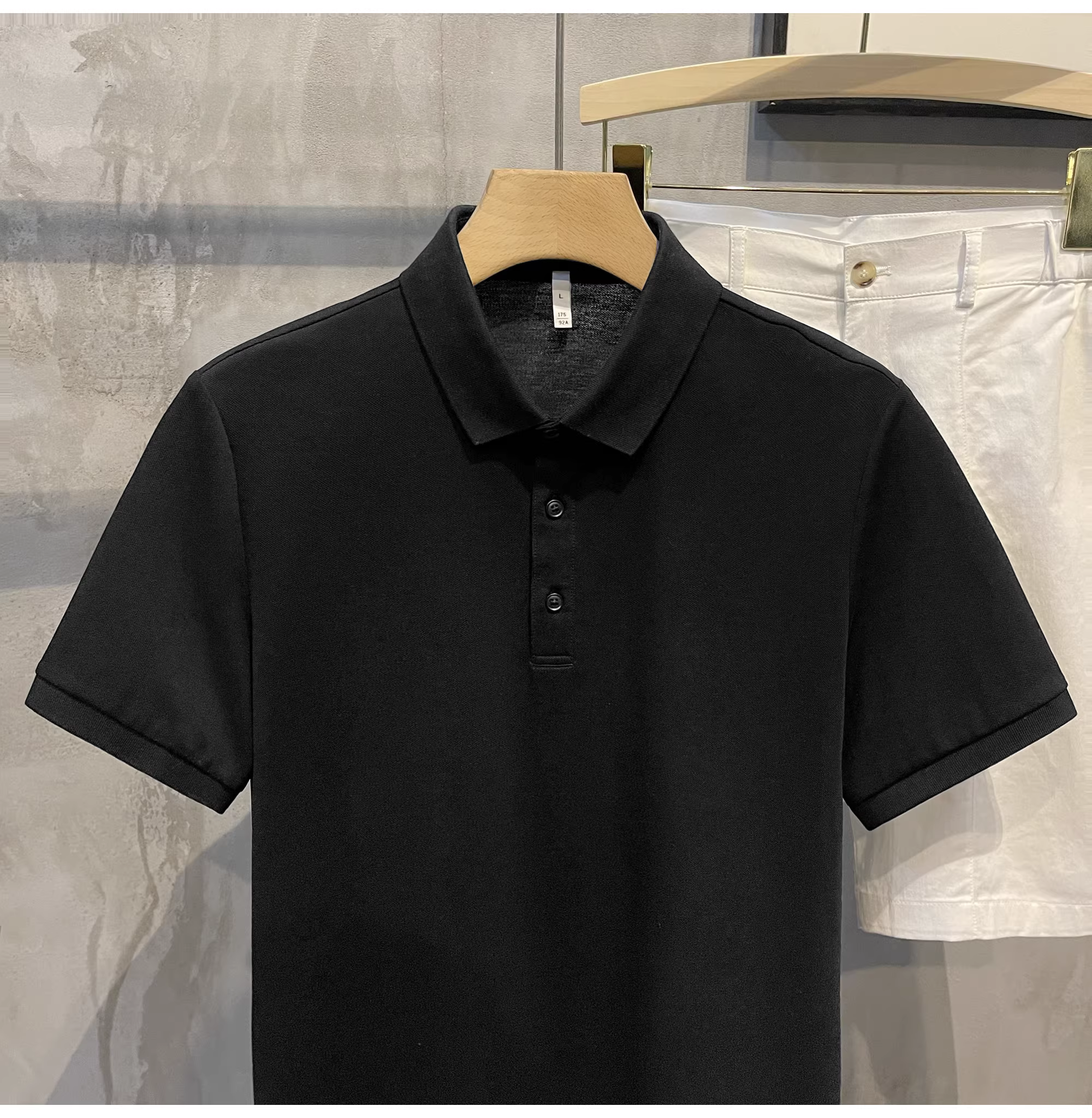 - Áo polo cotton pique màu trơn mới của LUUD dành cho nam, kiểu dáng ôm vừa vặn, đa năng, phong cách retro Hàn Quốc