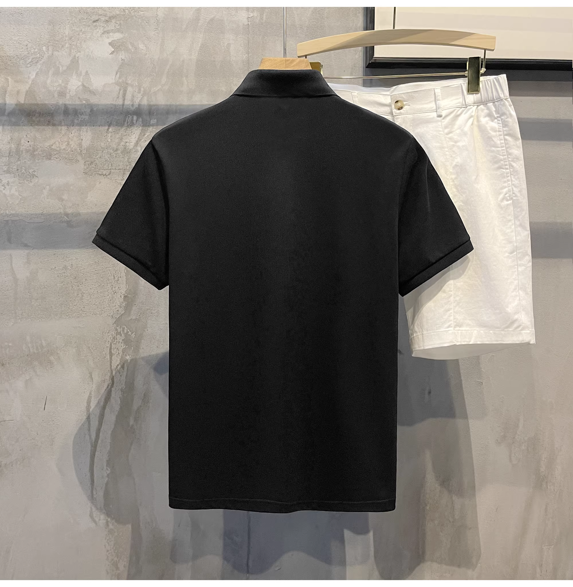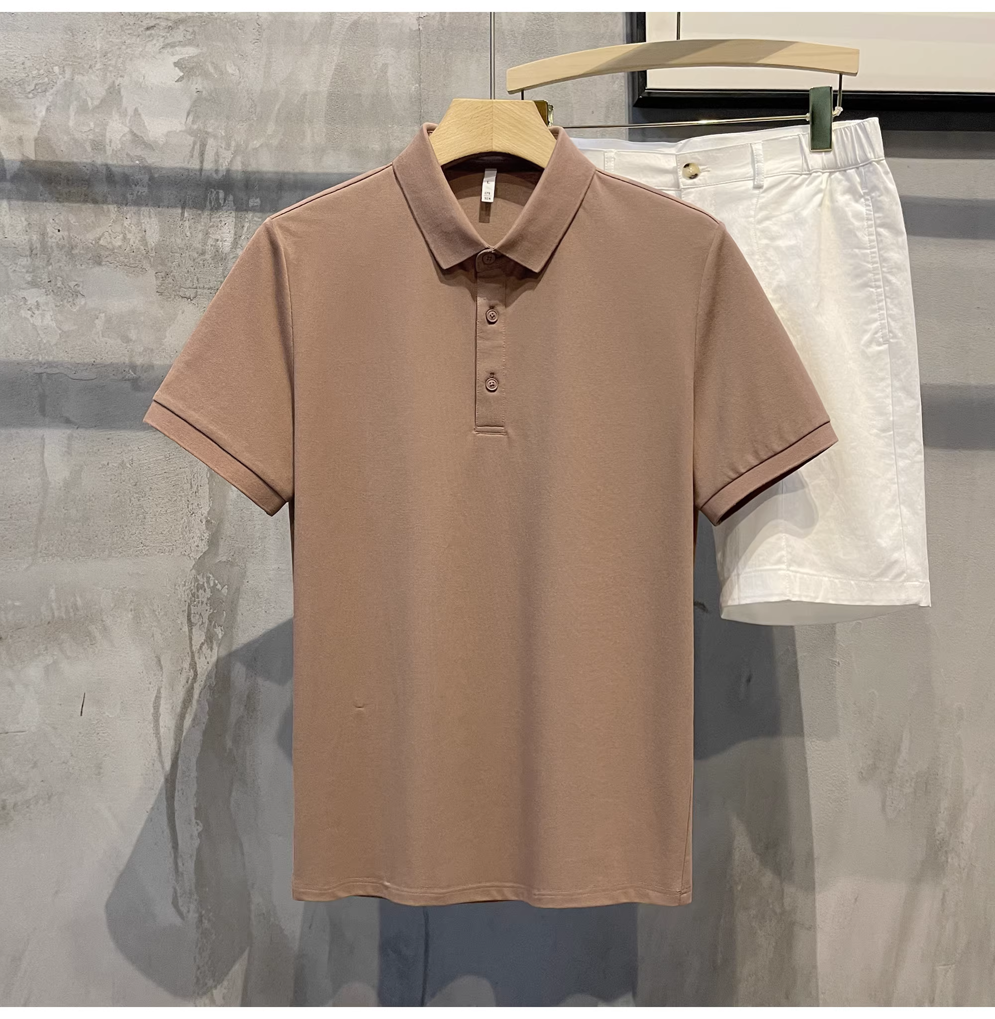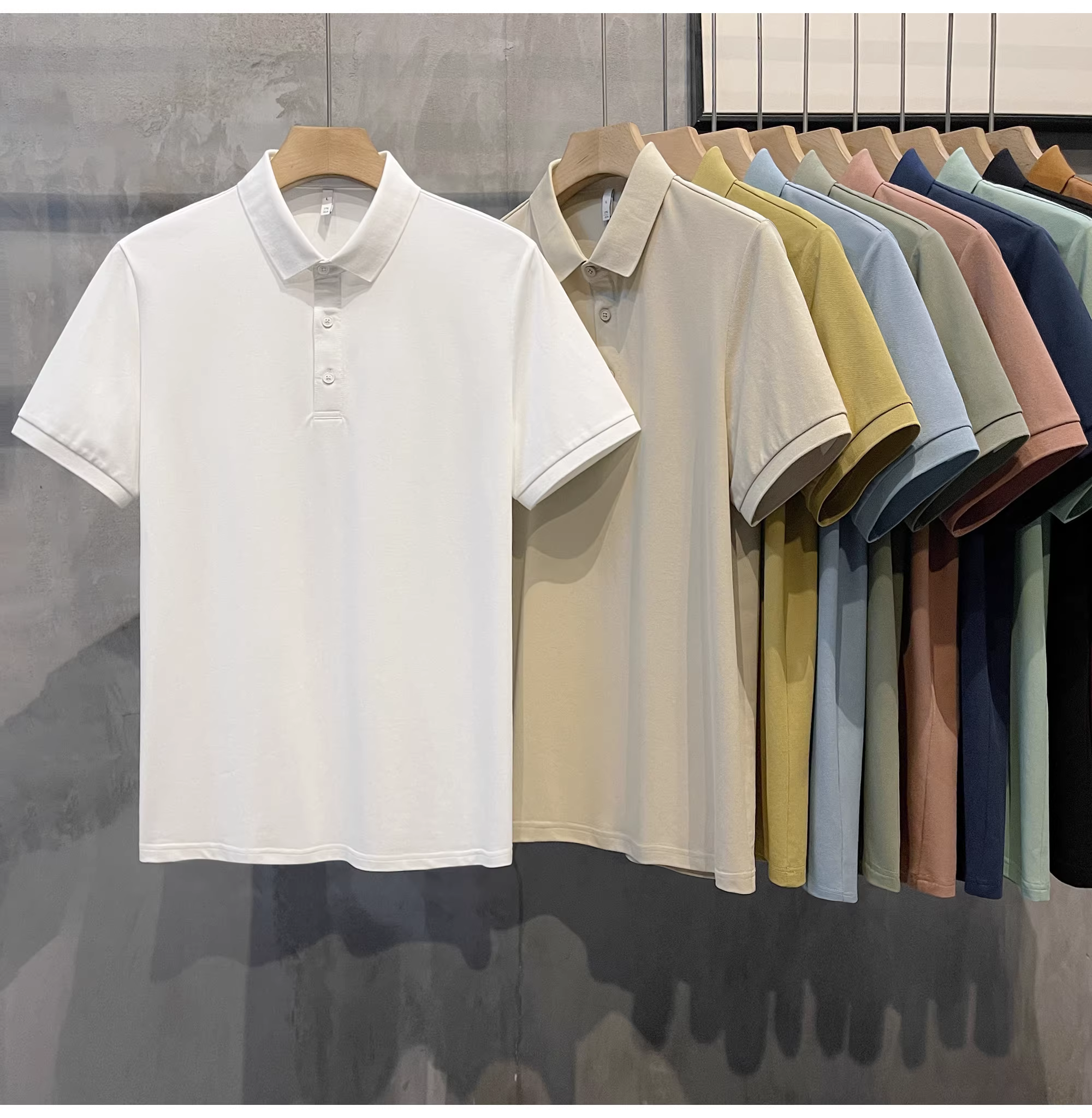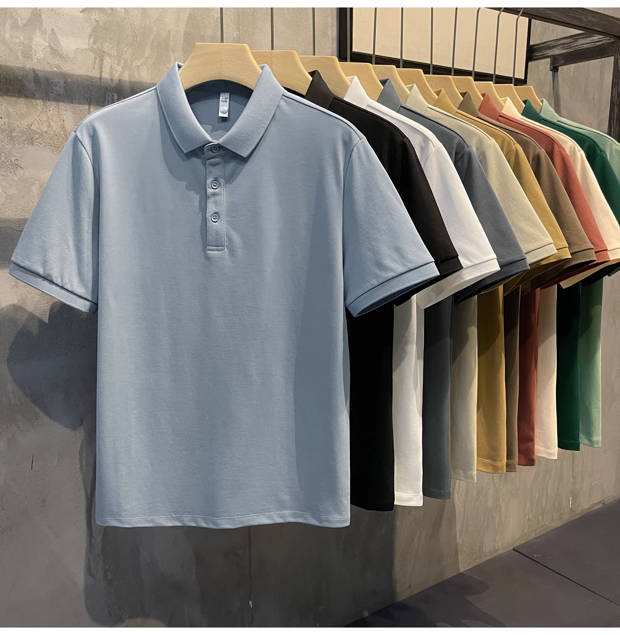 - Áo polo cotton pique màu trơn mới của LUUD dành cho nam, kiểu dáng ôm vừa vặn, đa năng, phong cách retro Hàn Quốc
