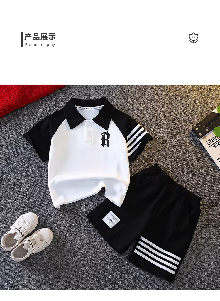 - Áo polo hè bé trai 2025, quần áo trẻ em hè mới, áo polo thời trang, bộ trang phục hè hợp thời trang cho bé trai