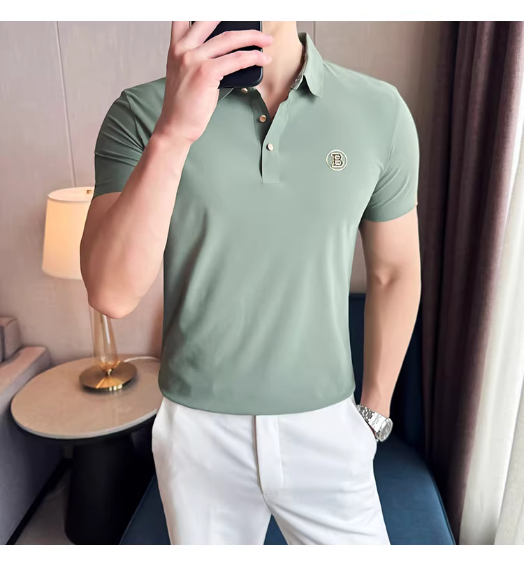 - Áo polo nam cao cấp chất liệu lụa đá mềm mại, không đường may, tay ngắn, kiểu dáng thời trang hè mới, ôm body, lịch sự, thích hợp cho công sở.