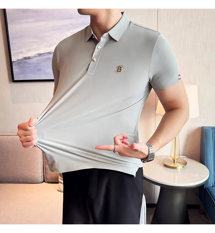 Áo polo nam cao cấp chất liệu lụa đá mềm mại, không đường may, tay ngắn, kiểu dáng thời trang hè mới, ôm body, lịch sự, thích hợp cho công sở.