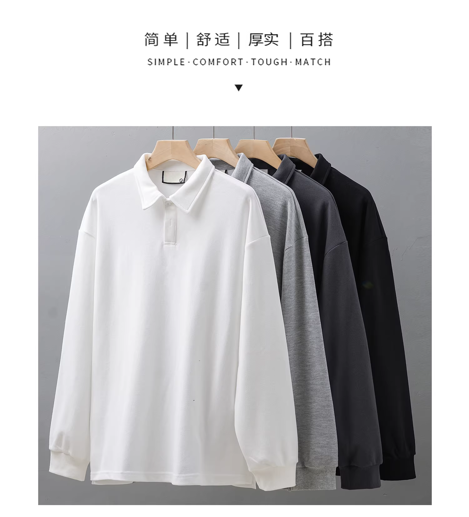 - Áo polo nam chất liệu cotton pique cao cấp 300G, tay dài, dáng rộng, mặc xuân thu, áo len trơn cao cấp có cổ.