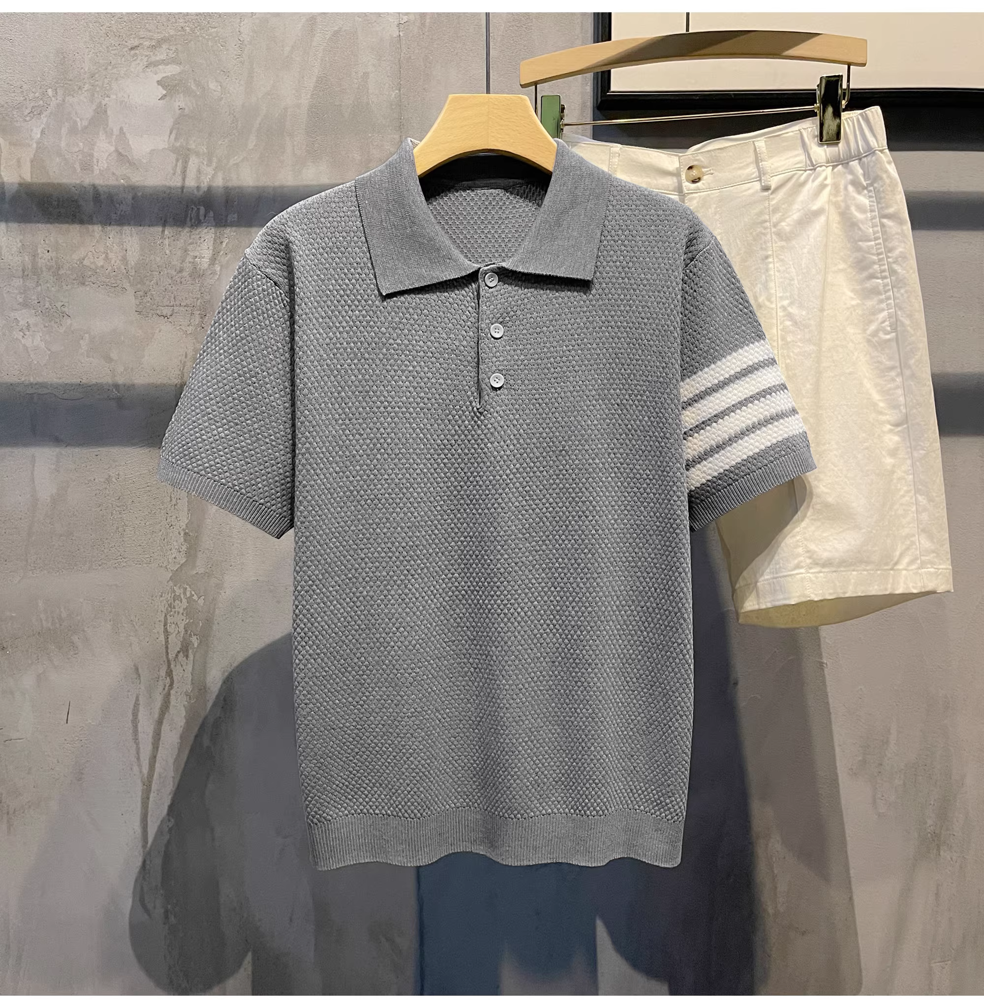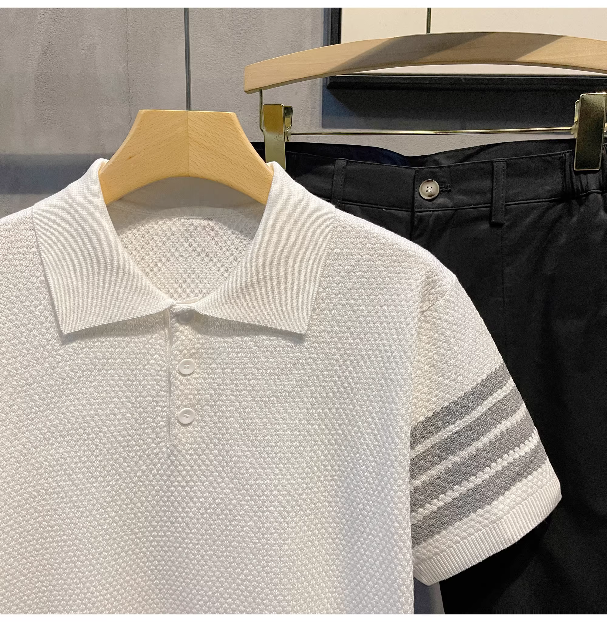 Áo polo nam chất liệu LUUD phối màu, chất liệu cotton lanh lụa đá mát lạnh, kiểu dáng casual, cổ sơ mi, tay ngắn, chất liệu dệt kim.