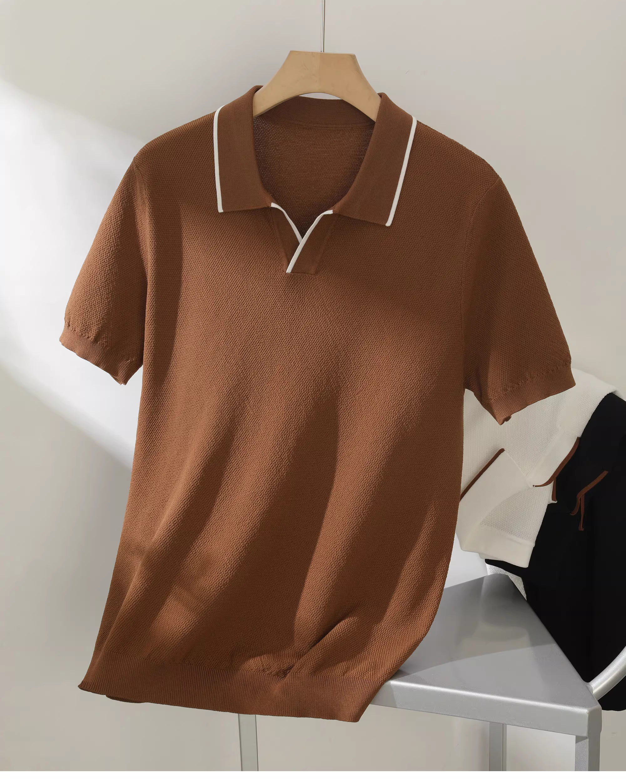- Áo Polo Nam JIEYI Dệt Kim Mát Mẻ Phong Cách Màu Khối, Thoáng Khí, Thấm Hút Mồ Hôi, Ôm Sát, Cổ Gập, Áo Polo