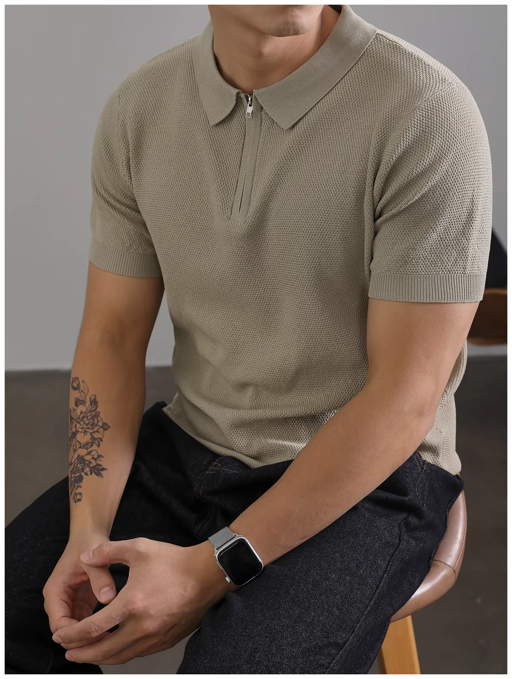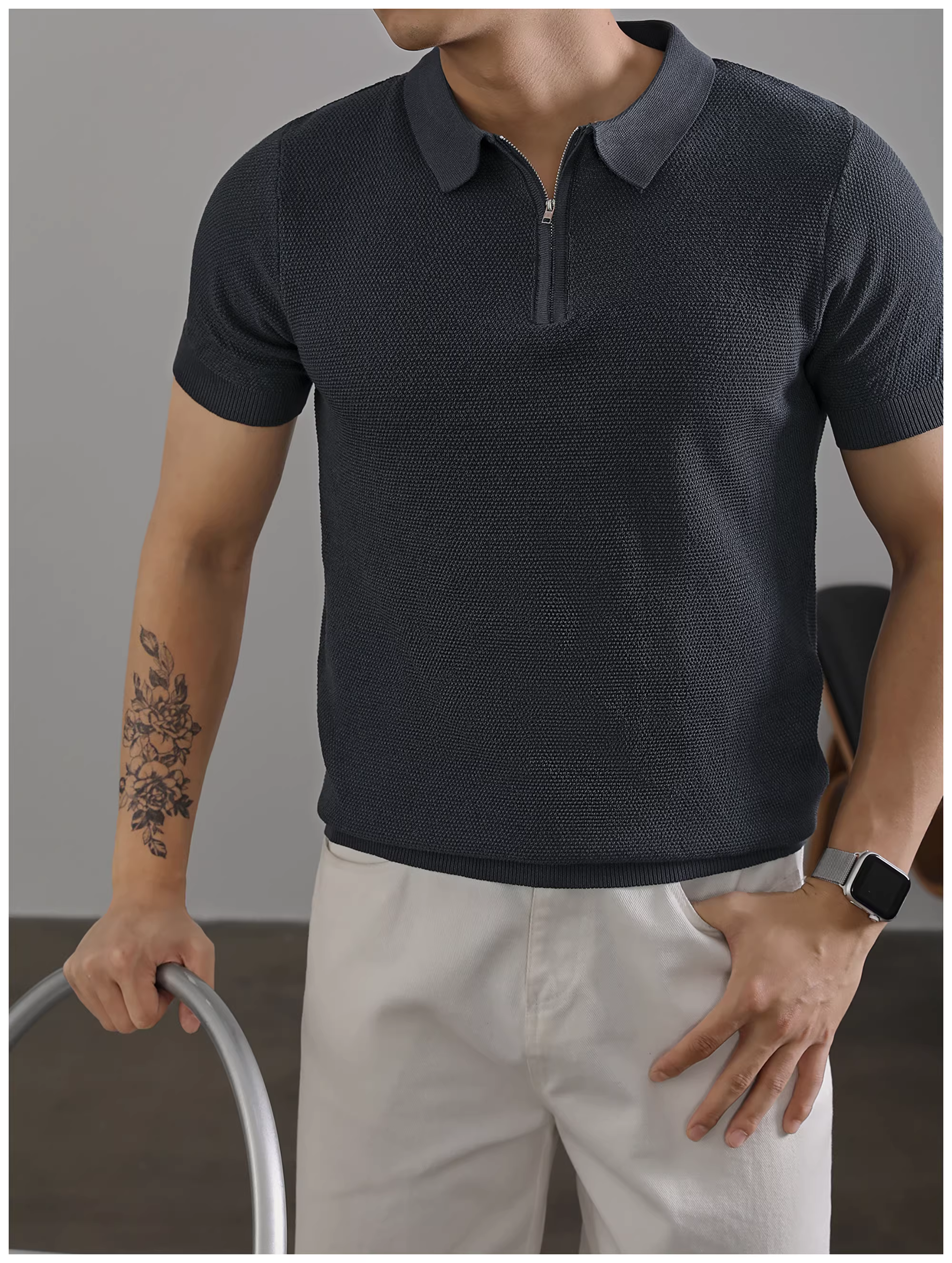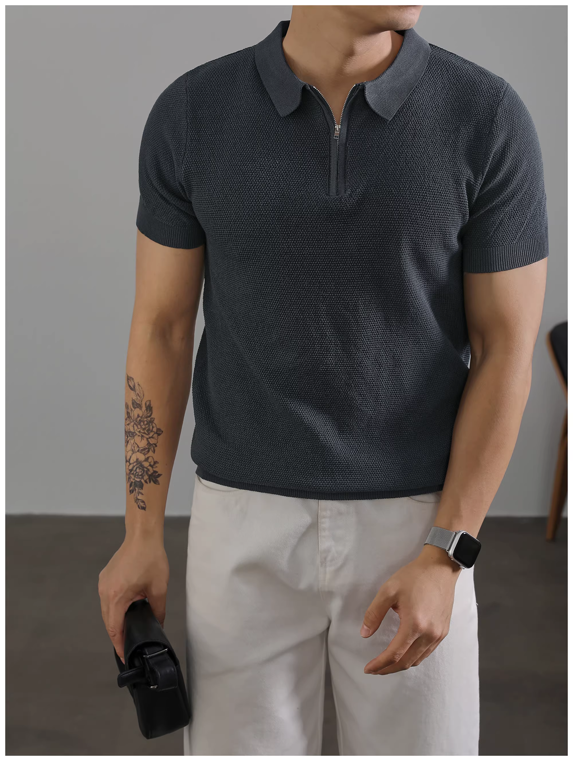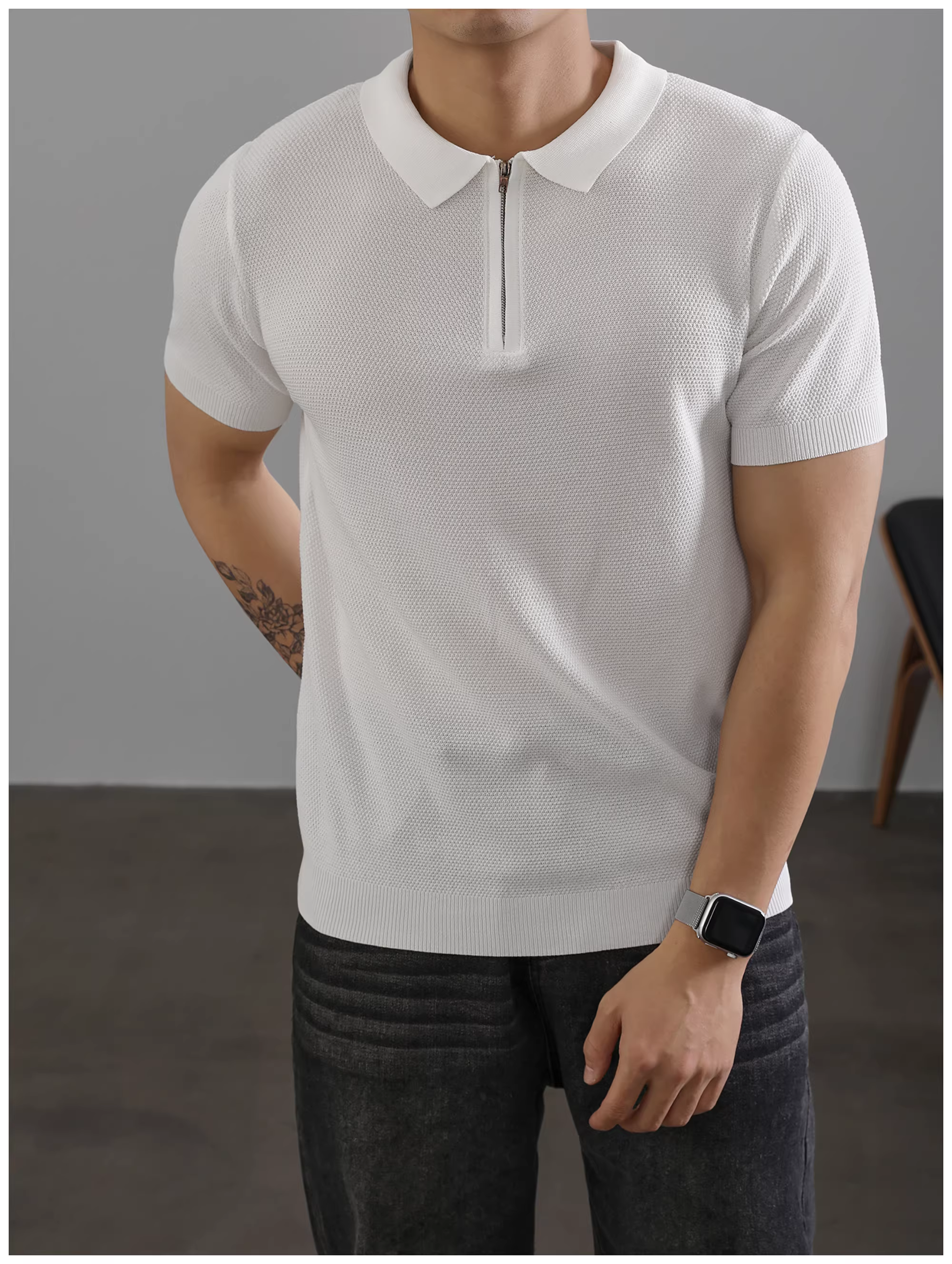 - Áo Polo nam LUUD màu trơn, cổ trụ, tay ngắn, mùa hè, kiểu dáng lịch sự, chất liệu thoáng khí, nửa khóa kéo, chất liệu dệt kim.