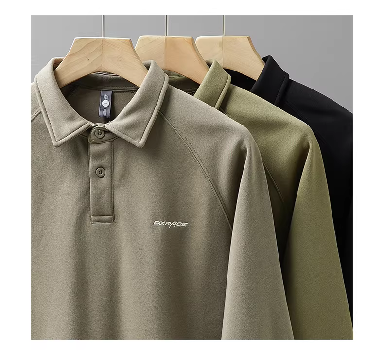 - Áo polo nam tay dài chất dày mùa xuân thu 2024 kiểu Mỹ cổ điển thêu, áo sweatshirt cổ trụ thường ngày