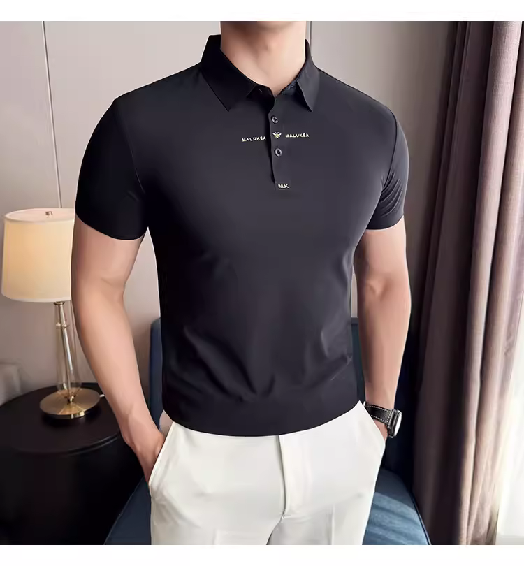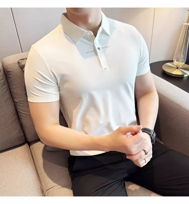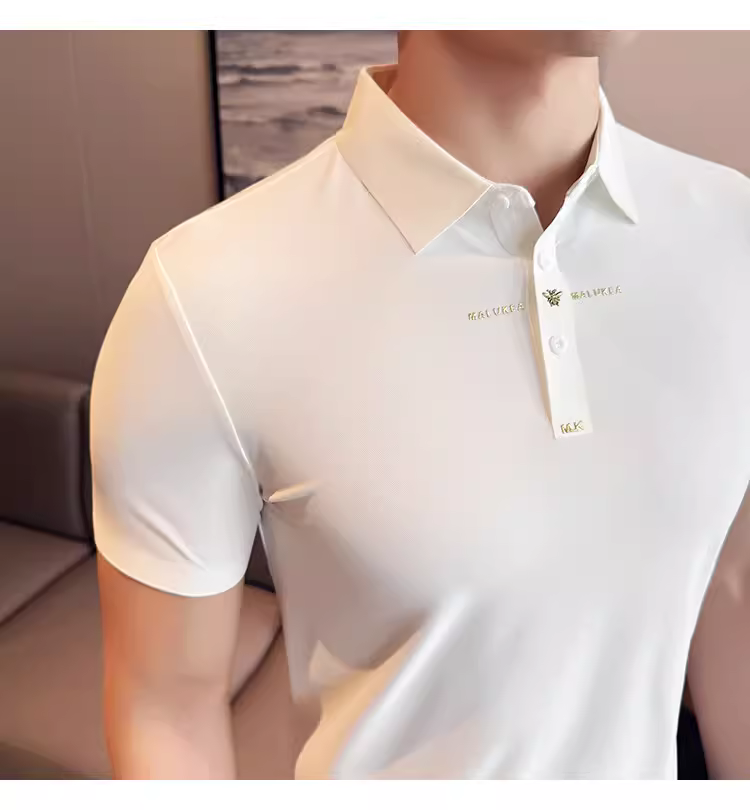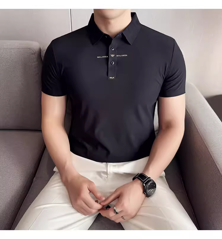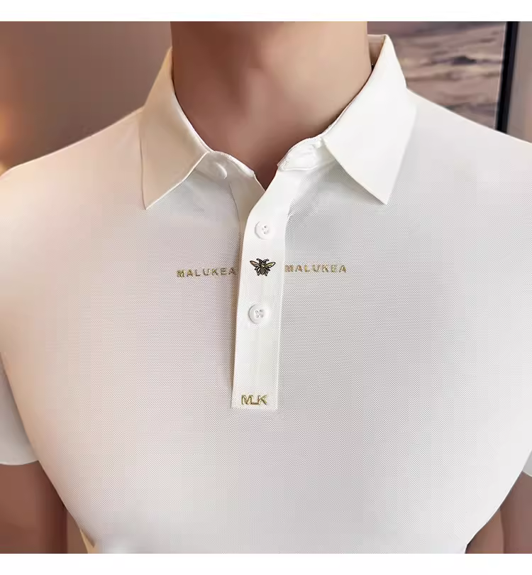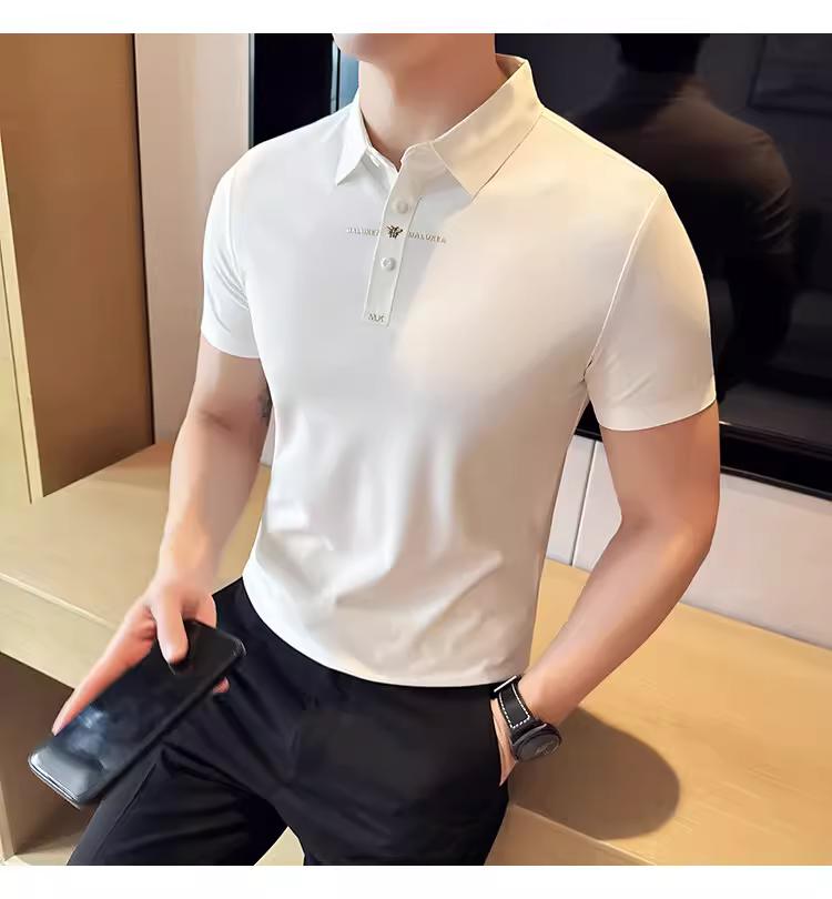 - Áo polo nam tay ngắn chất liệu lụa đá cao cấp, thêu tay, kiểu dáng mùa hè mới, áo thun cổ trụ lịch lãm cao cấp.