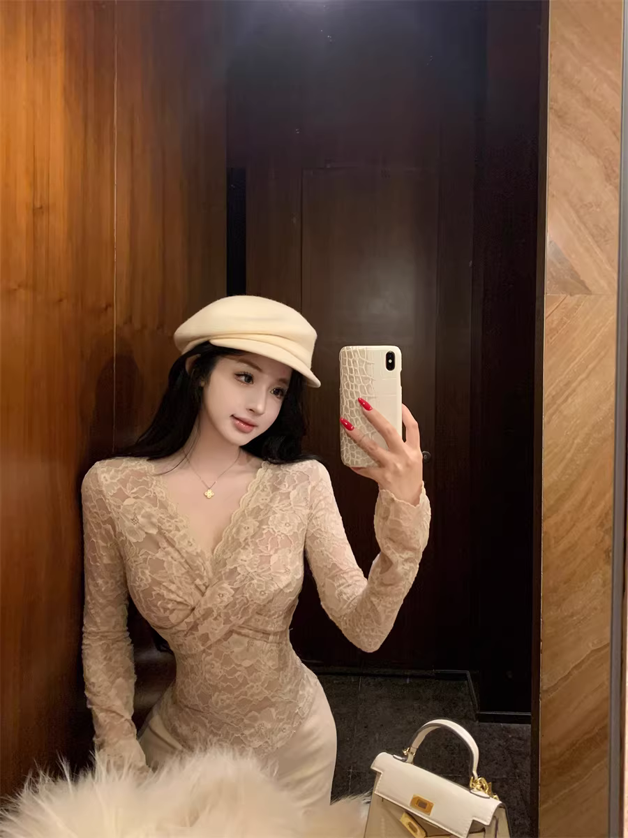Áo ren cổ chữ V dành cho nữ, thích hợp cho mùa xuân, mùa thu và mùa đông, áo sơ mi dài tay, gợi cảm và nóng bỏng, mang lại vẻ ngoài rất quyến rũ và trưởng thành.