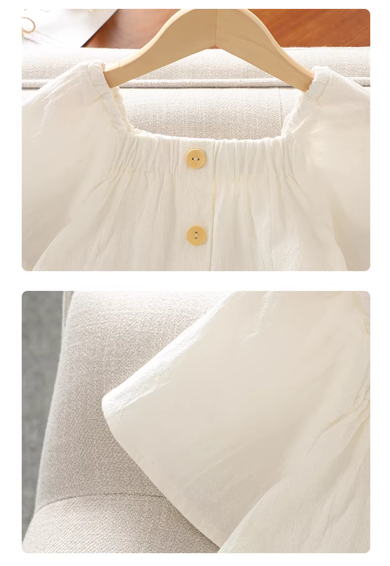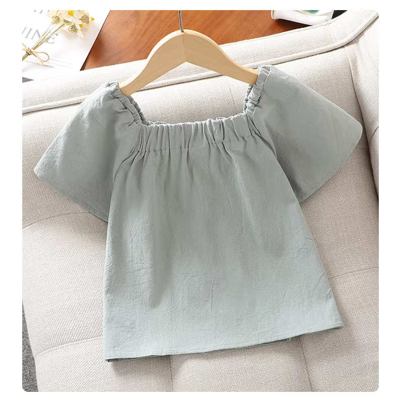 - Áo sơ mi babydoll ngắn tay cho bé gái 2025 áo sơ mi cổ vuông mới áo mùa hè cho bé gái áo sơ mi mỏng bằng vải cotton và vải lanh dành cho trẻ em