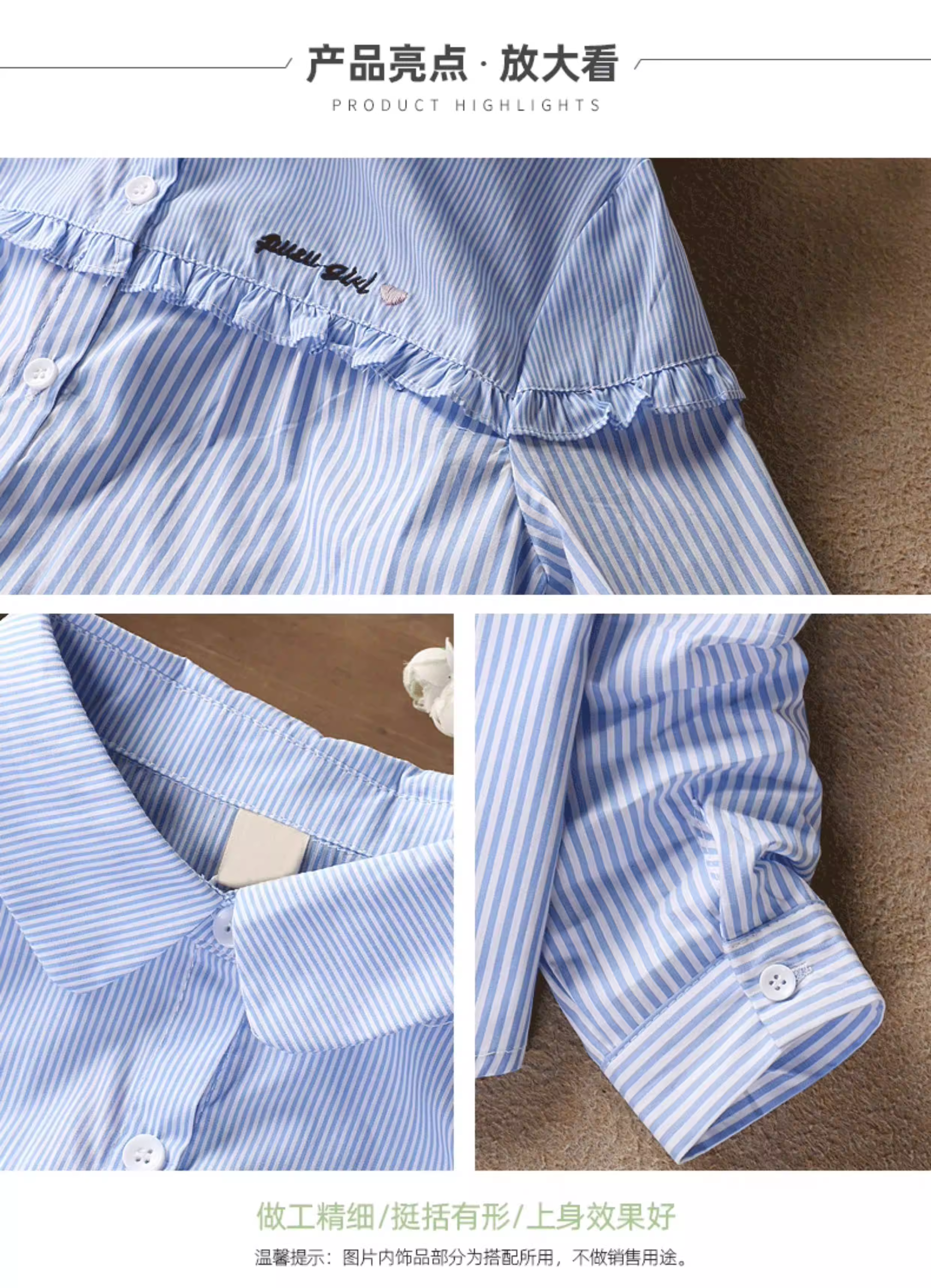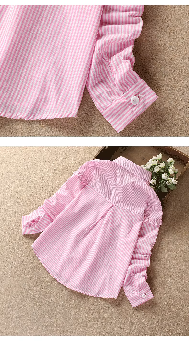 - Áo sơ mi bé gái, quần áo trẻ em xuân thu, áo dài tay, áo sơ mi sọc cotton nguyên chất cho bé gái, quần áo mùa thu mới sành điệu và thời trang