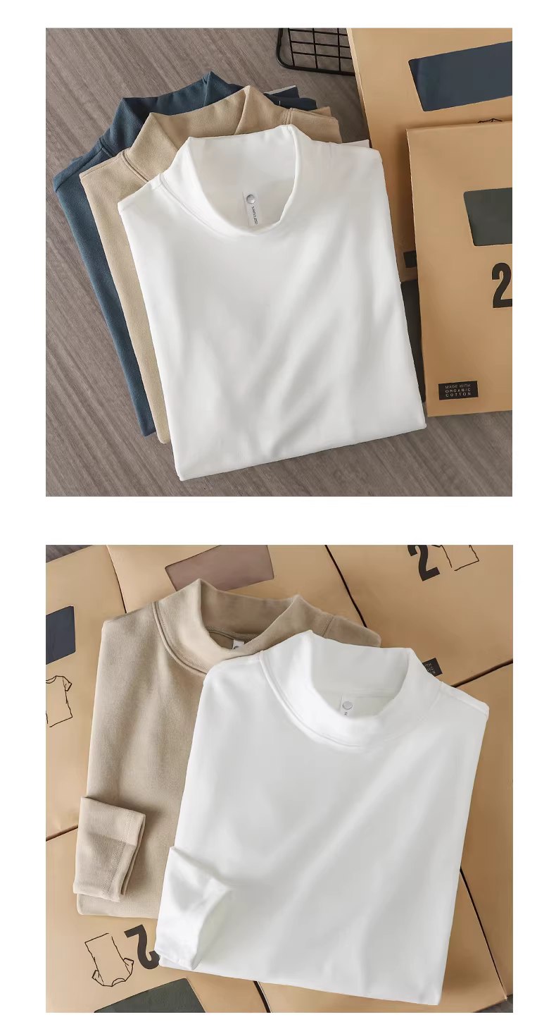 - Áo sơ mi cổ cao nửa cổ bằng nhung Đức hai mặt hạng nặng Pure Group 350G dành cho nam và nữ, áo thun dài tay bên trong màu trơn ấm áp mùa thu đông.