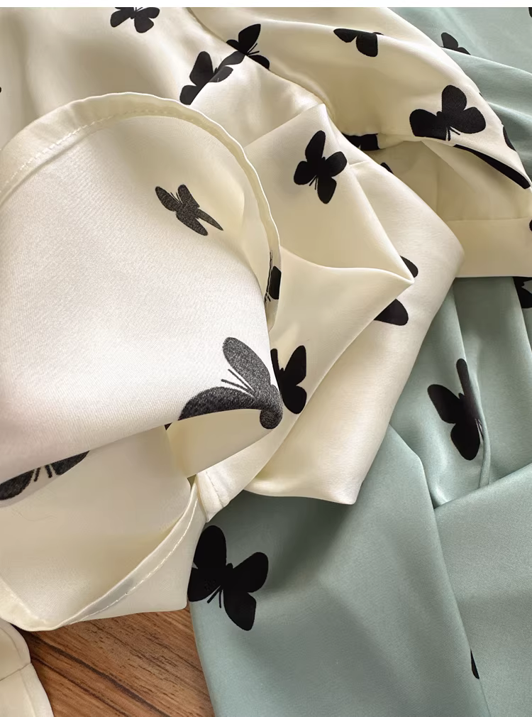 - Áo sơ mi cổ tròn dáng rộng chống nhăn hình bướm lãng mạn mát mẻ bằng vải acetate cho nữ mùa hè mới