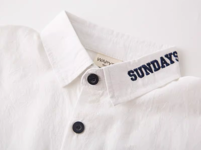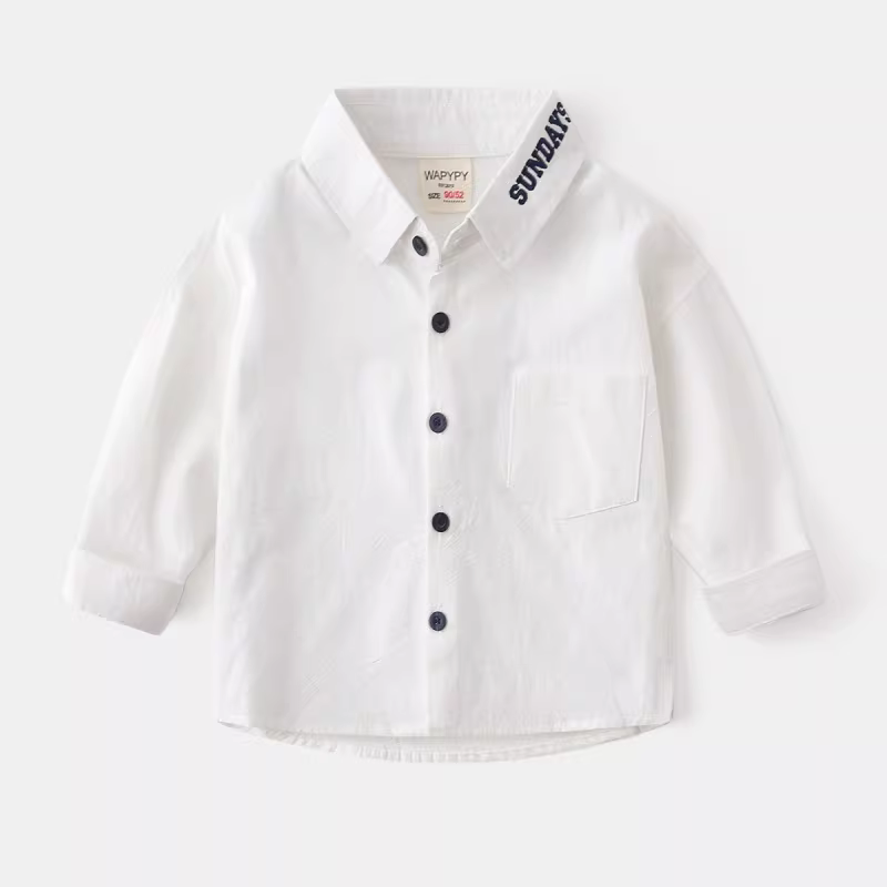 - Áo sơ mi cotton nguyên chất cho bé trai có thêu chữ, áo sơ mi dài tay cổ rộng có cổ rộng màu trơn phong cách Hàn Quốc mùa thu mới dành cho trẻ em