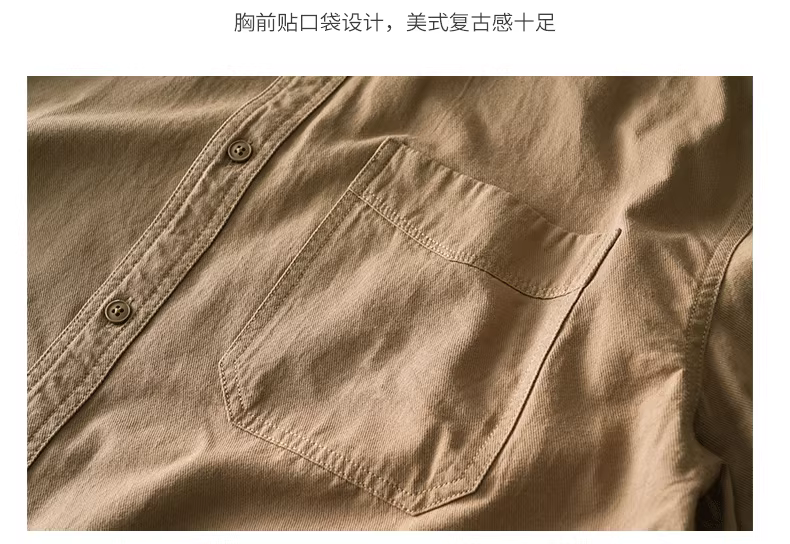 - Áo sơ mi cotton nguyên chất hạng nặng OMZM350G dành cho nam, áo sơ mi công sở dài tay phong cách Mỹ mùa thu, áo khoác sơ mi có ve áo cao cấp