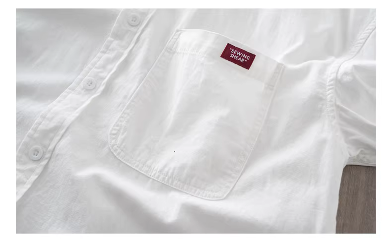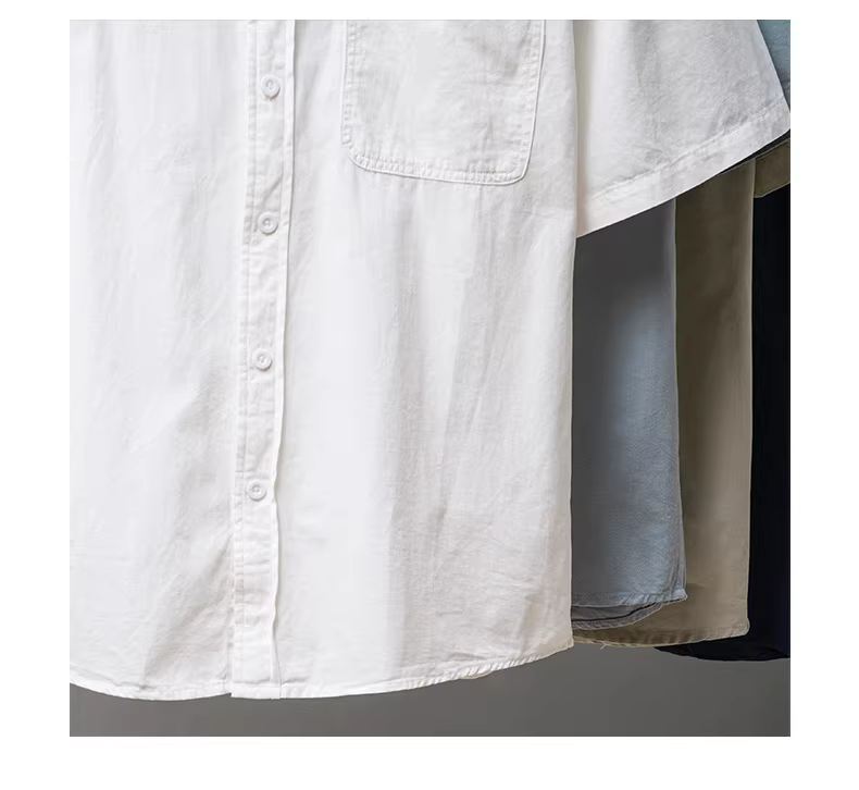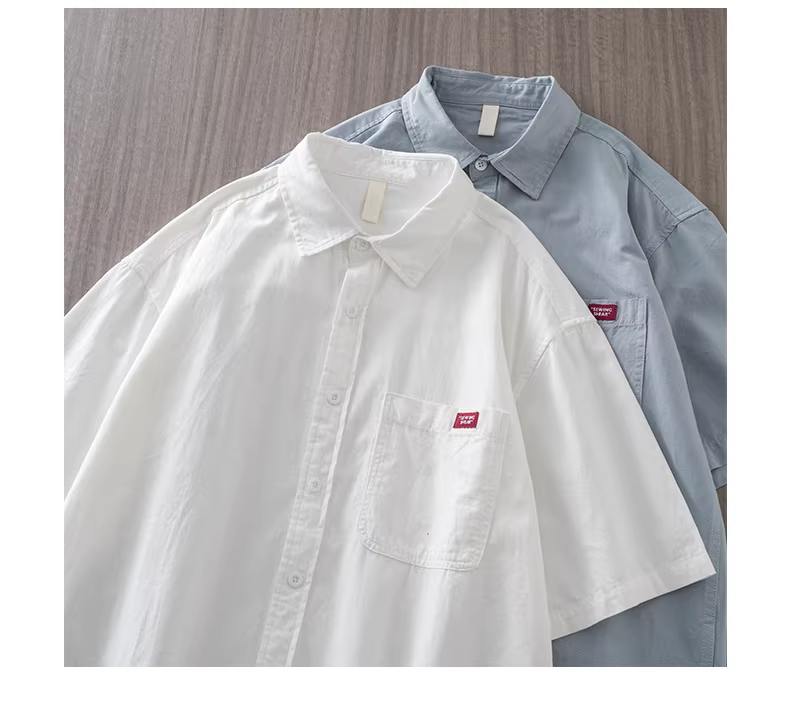 Áo sơ mi cotton nguyên chất kiểu Mỹ dành cho nam, tay ngắn, mặc thường ngày mùa hè, dáng rộng, cảm giác cao cấp, màu trơn, có ve áo, có túi, áo khoác công sở.
