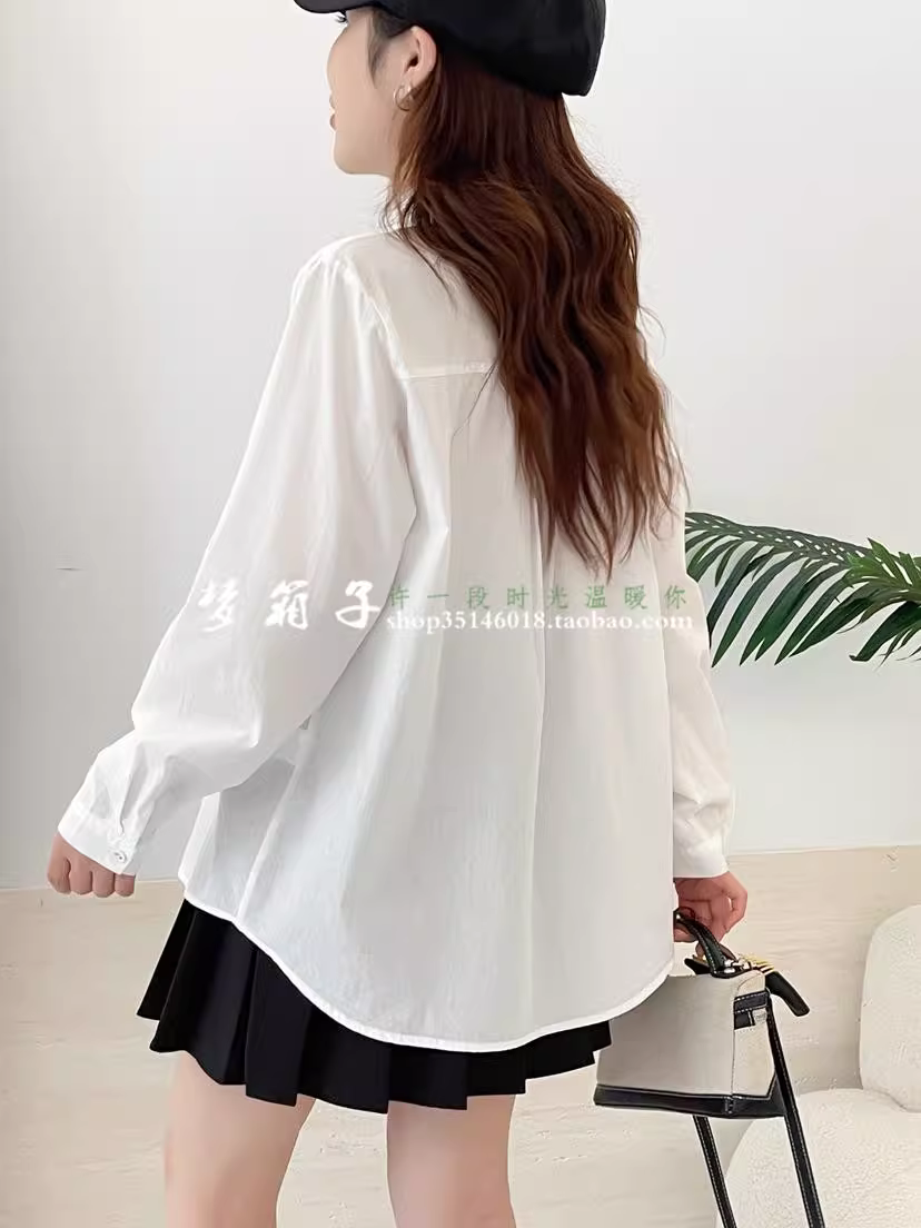 - Áo sơ mi cotton thêu hình cáo hoạt hình Dream Box 2025 mùa thu mới, cổ bẻ, tay dài, dáng rộng, áo sọc giảm tuổi tác.