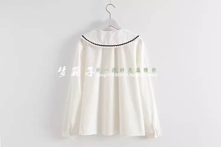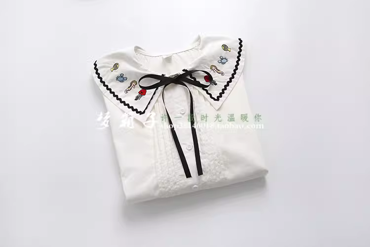 棉布面料,尖角娃娃领,系带蝴蝶结