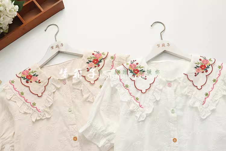 柔软的纯棉绣布面料,花朵刺绣双层领,百搭宽松款