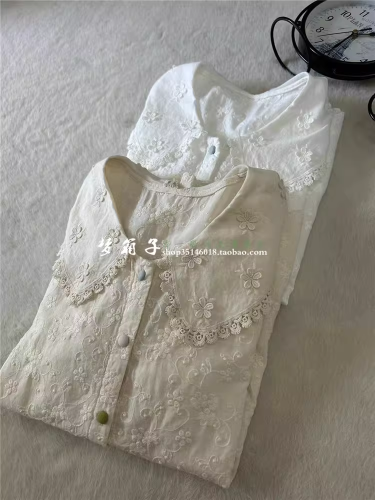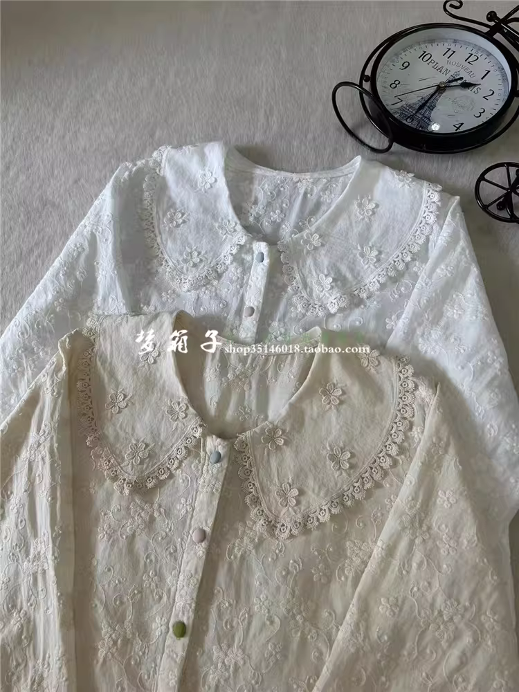 - Áo sơ mi cotton thêu hoa nhỏ tay dài cổ búp bê dáng rộng nhiều màu sắc Dream Box Thu 2024