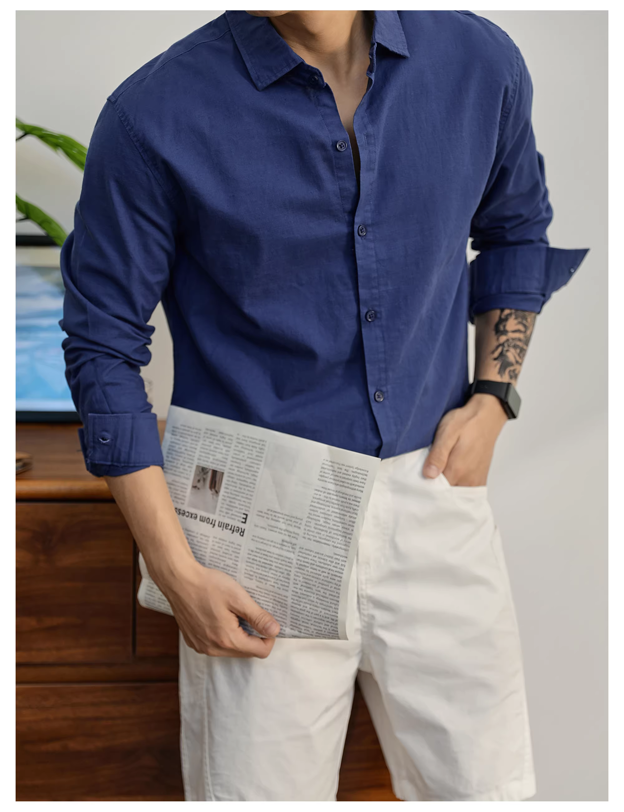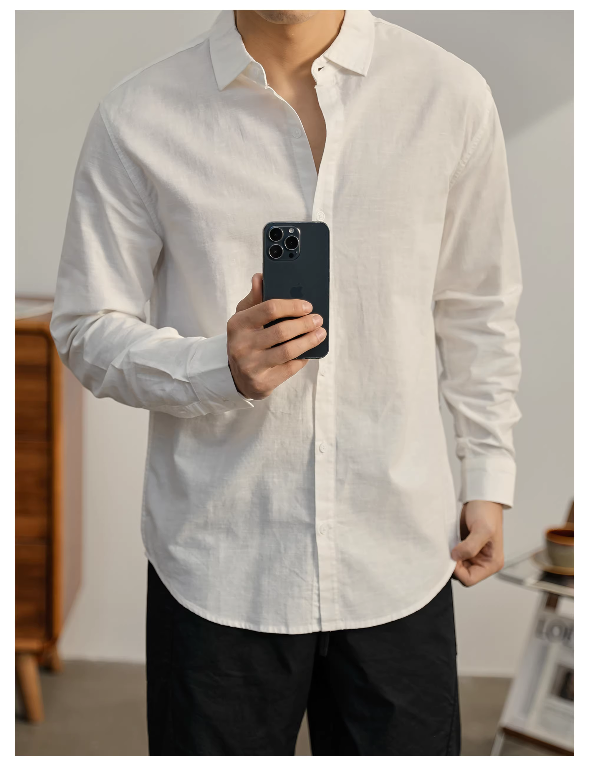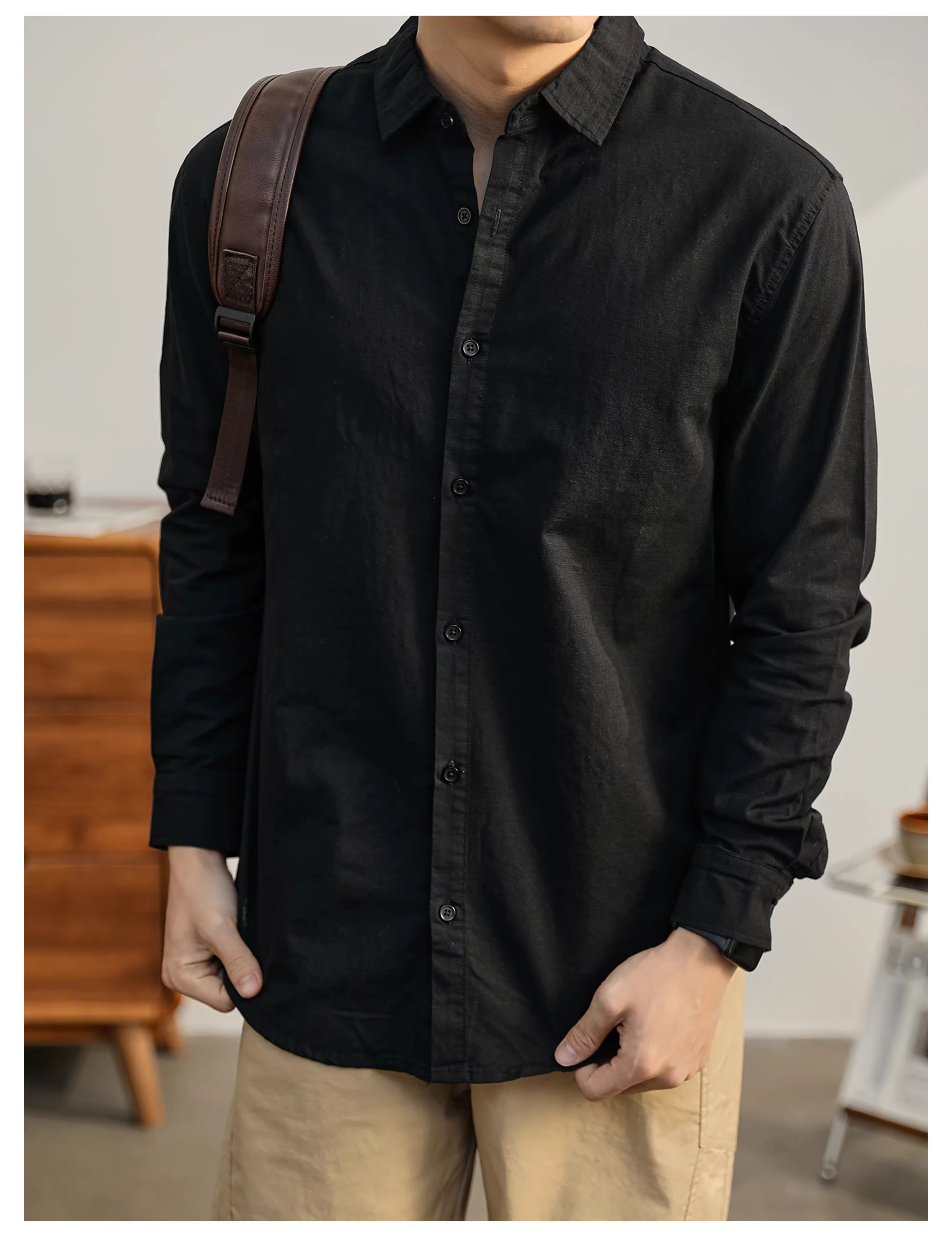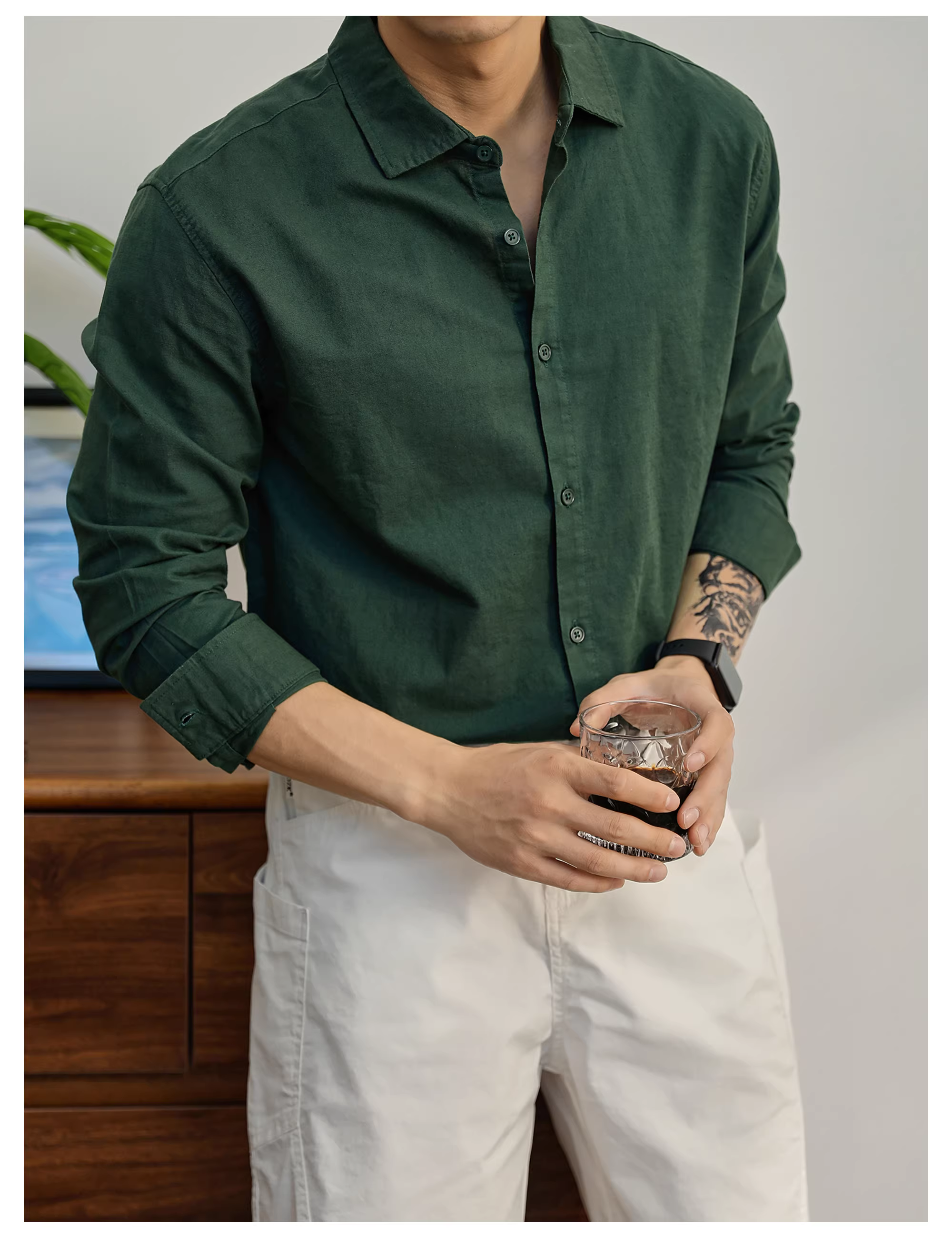 - Áo sơ mi cotton và vải lanh đa năng hàng ngày màu xanh lá cây hoang dã sang trọng hợp thời trang LUUD dành cho nam giới, áo sơ mi dài tay phối lớp đa năng thông thường mùa thu