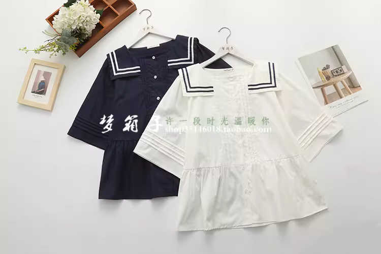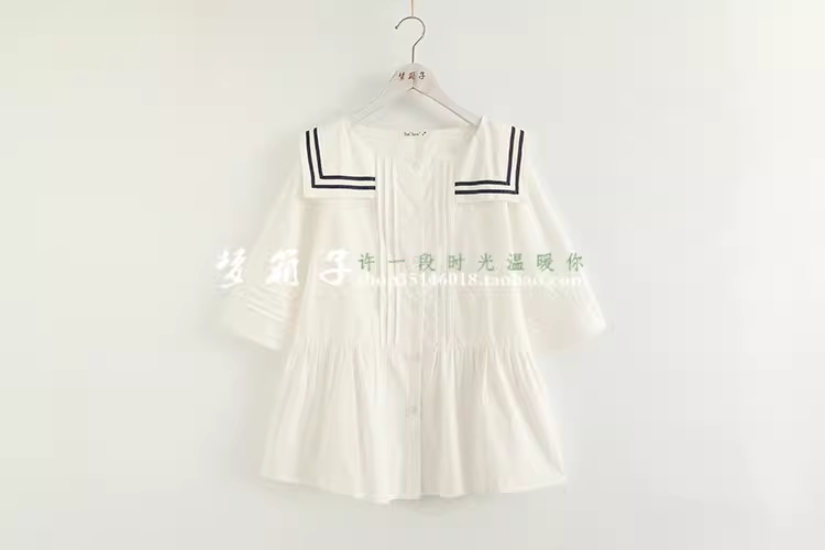 - Áo sơ mi cotton xếp ly dáng rộng cổ thủy thủ tay ba phần, kiểu dáng xòe điệu đà Dream Box 2024 mùa hè mới.