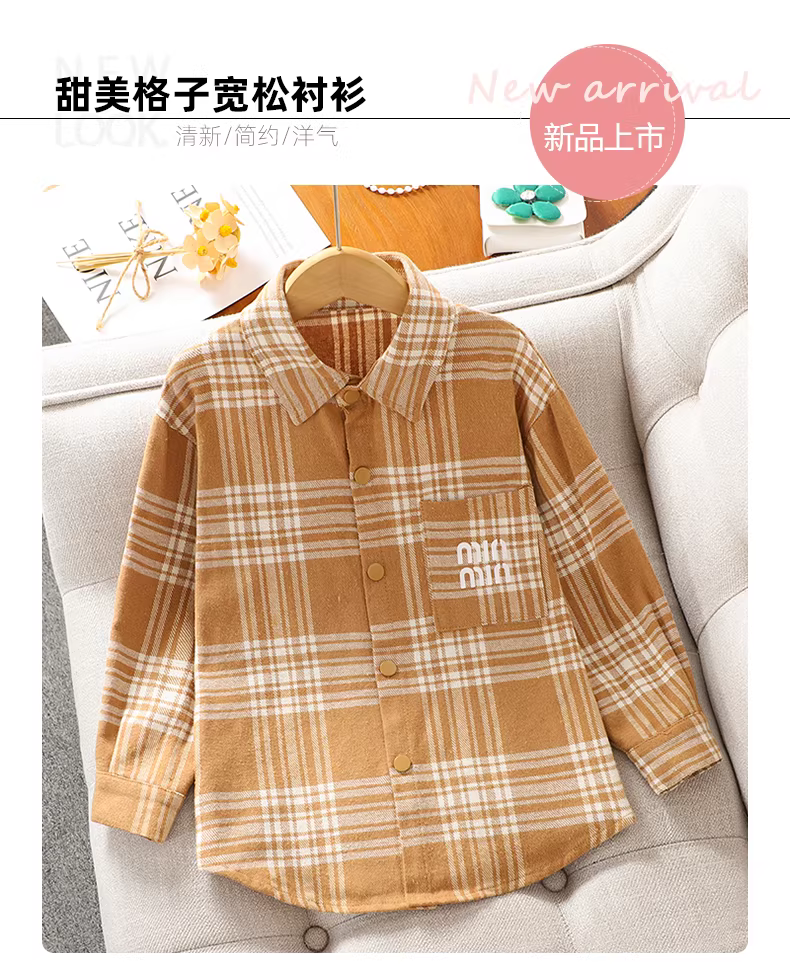 - Áo sơ mi dài tay cho bé gái mùa xuân thu 2025 kiểu mới, áo kiểu caro thường ngày cho bé gái lớn, áo sơ mi và áo khoác trẻ em