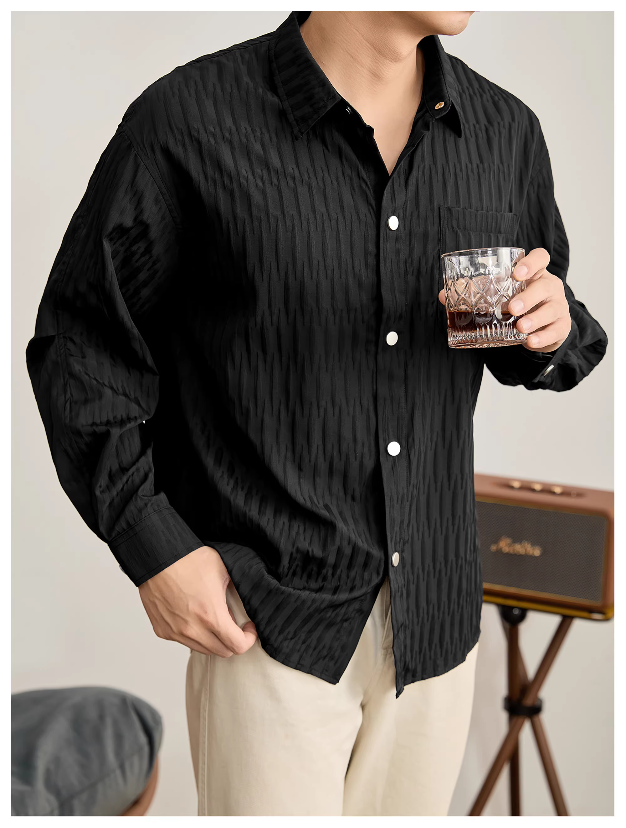 Áo sơ mi dài tay có khuy cài màu trắng ngọc bích LUUD dành cho nam, Áo sơ mi họa tiết jacquard ba chiều hình học thu đông.