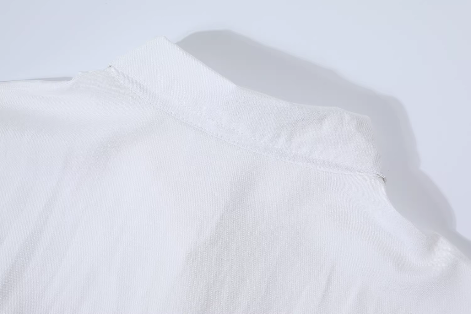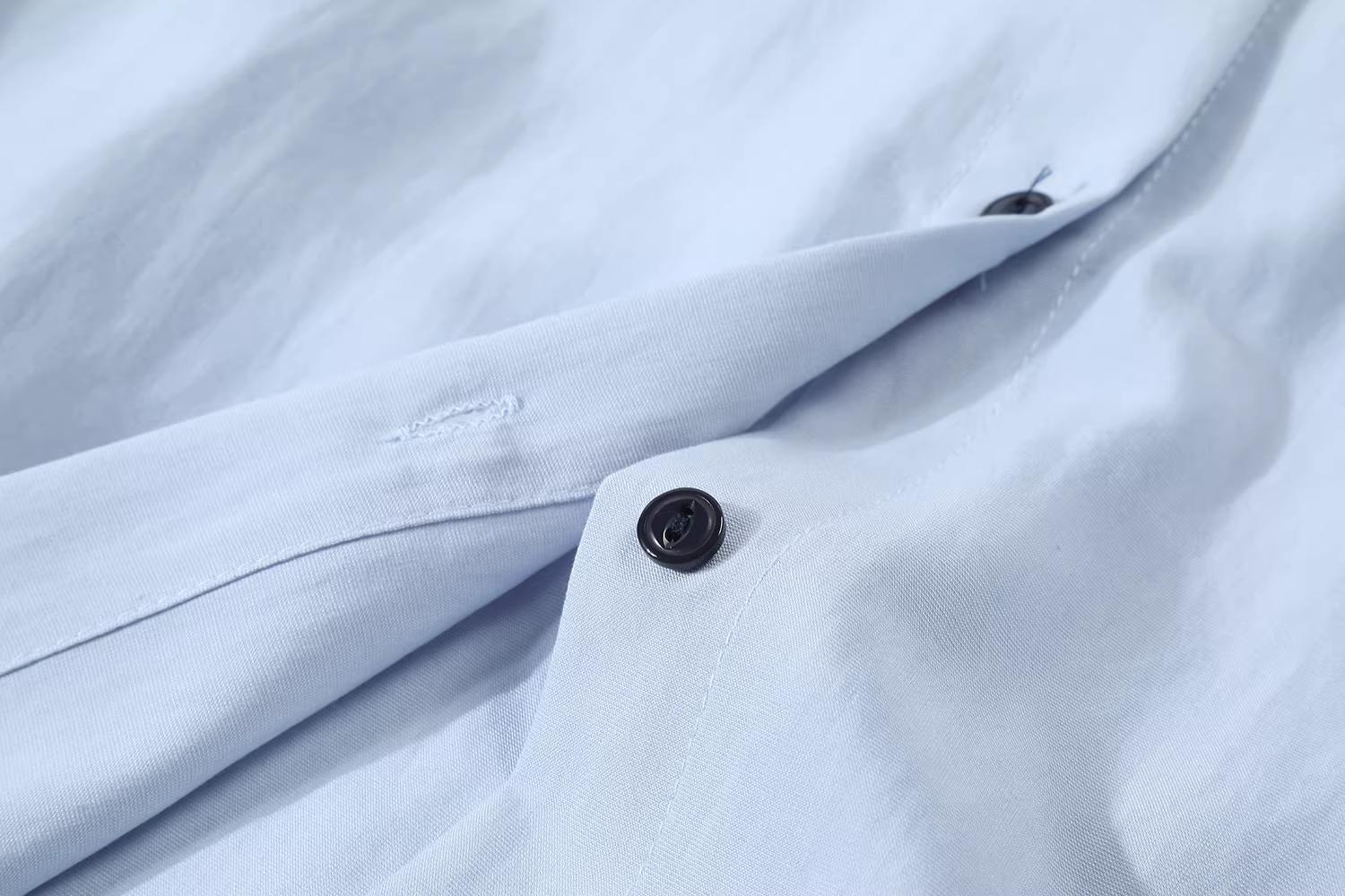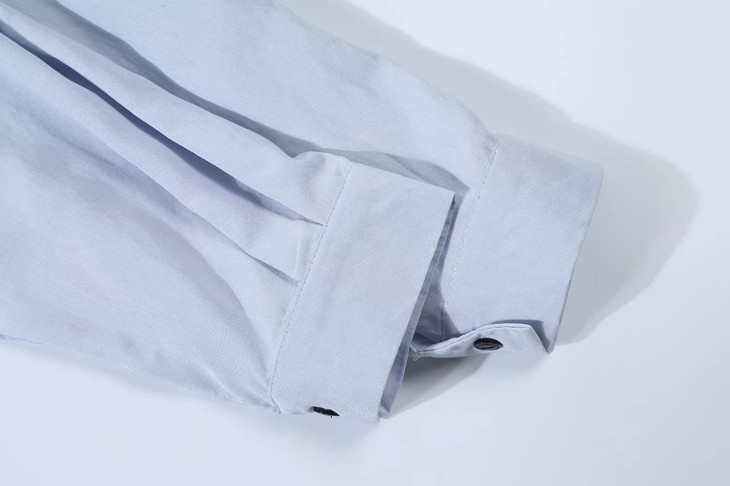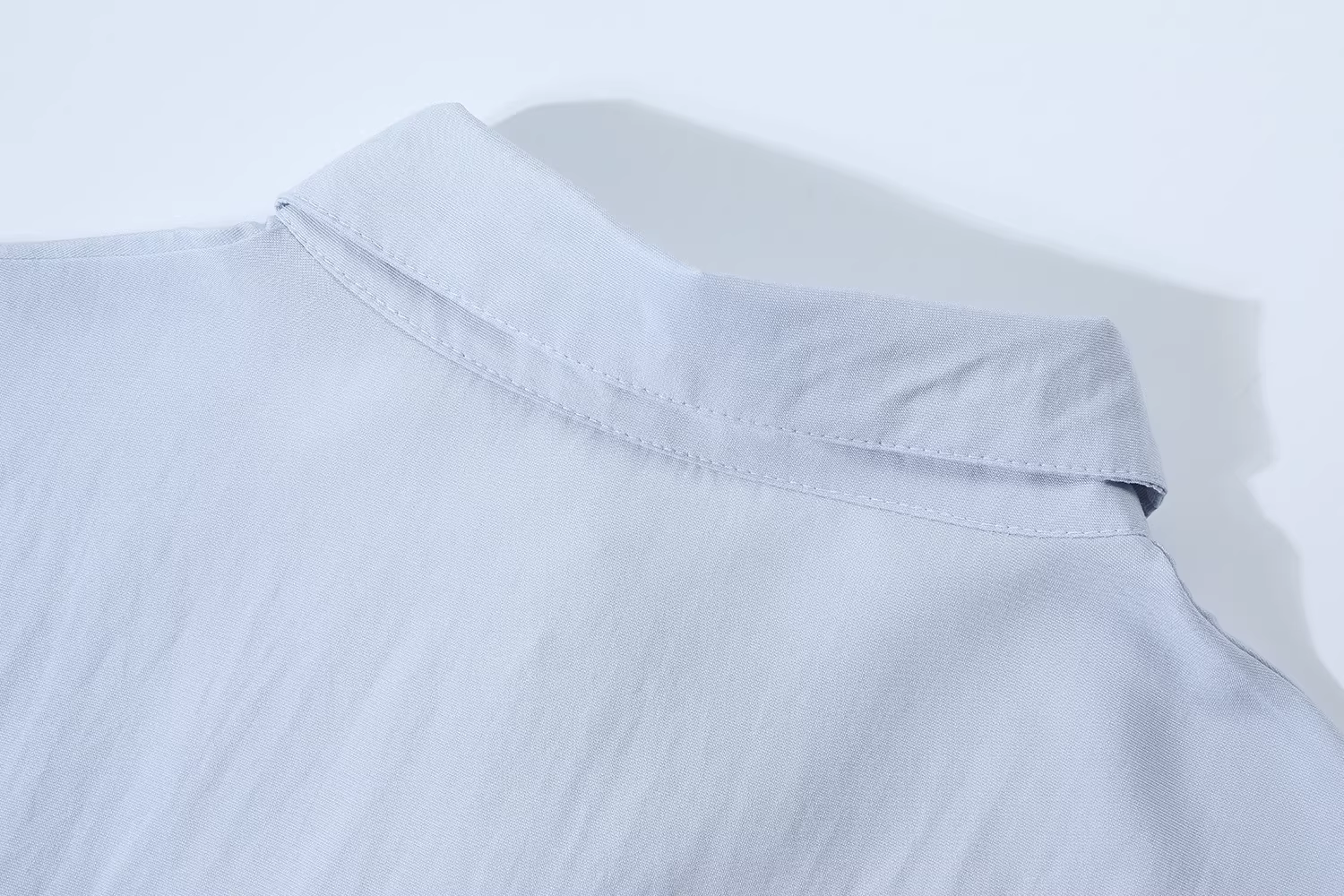- Áo sơ mi dài tay cổ polo thêu màu xanh phong cách Hàn Quốc dành cho nữ, áo sơ mi dáng rộng thanh lịch mùa thu