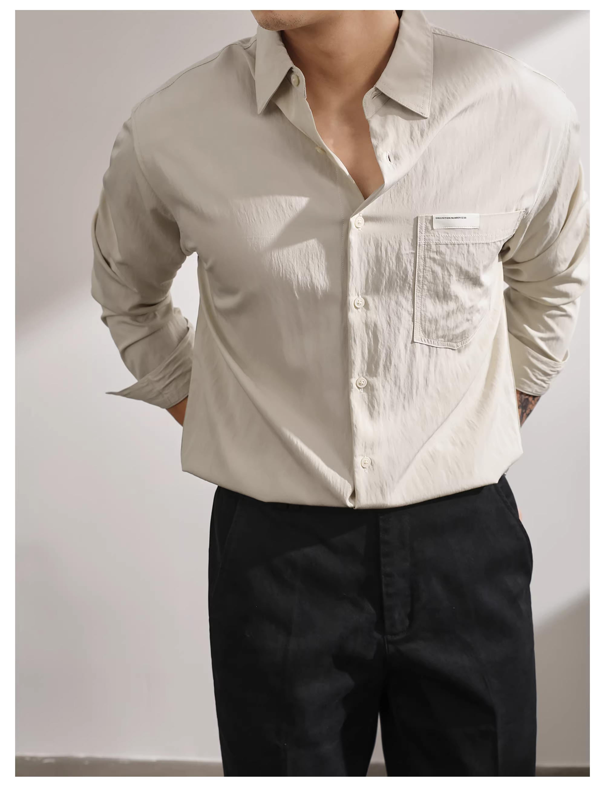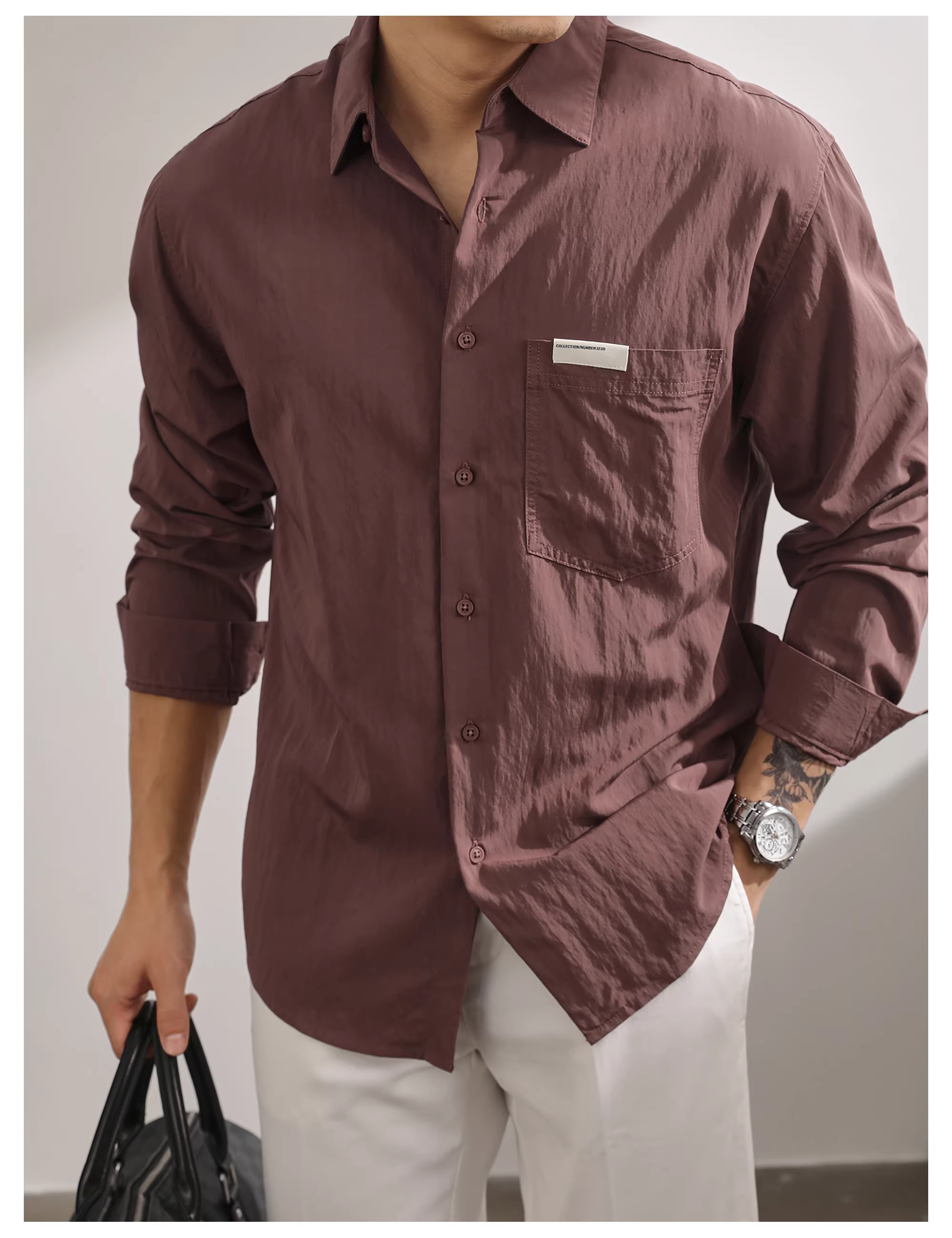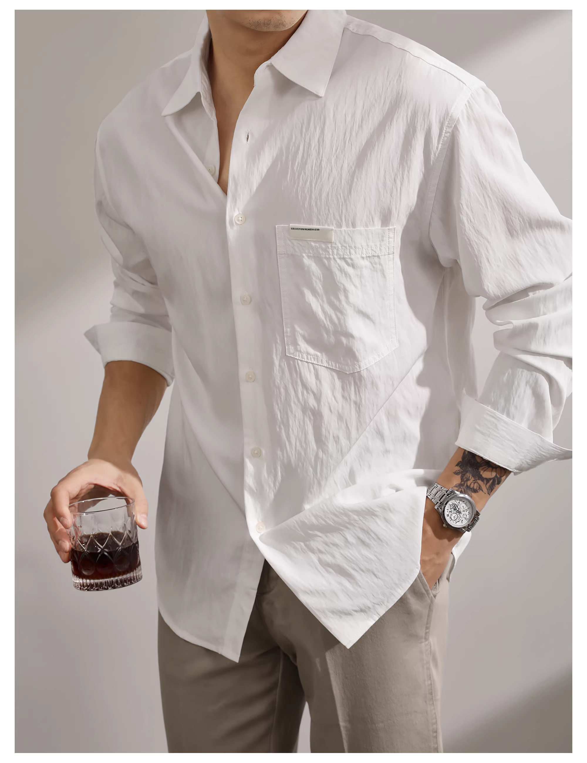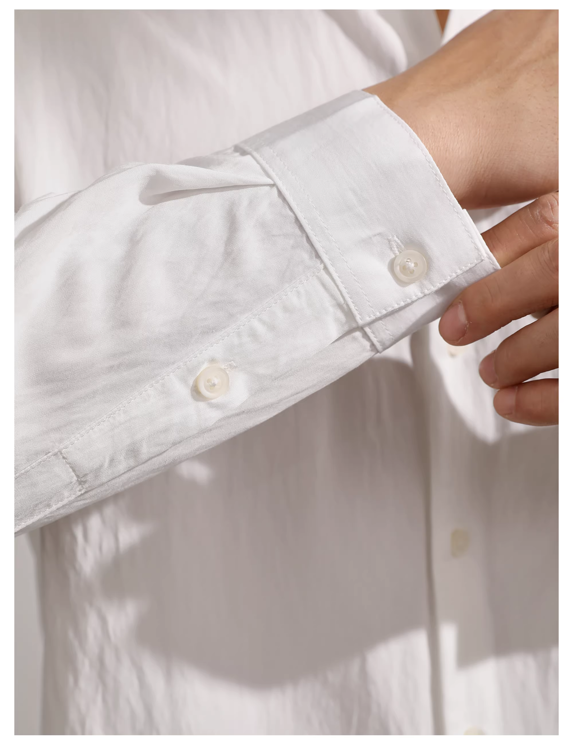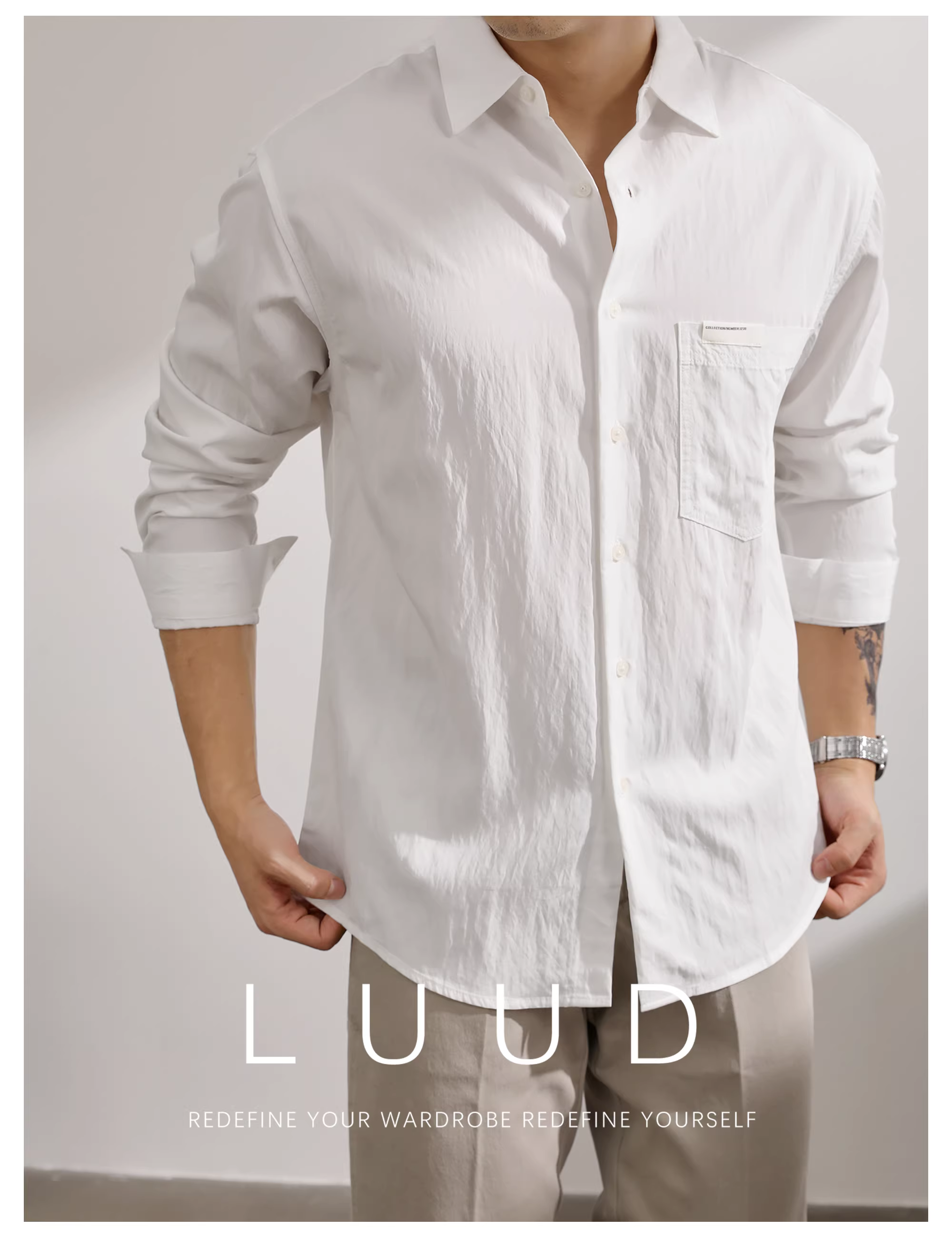 Áo sơ mi dài tay đơn giản và nghệ thuật của LUUD dành cho nam giới, áo sơ mi cotton có cổ màu trắng đa năng mang lại cảm giác cao cấp.